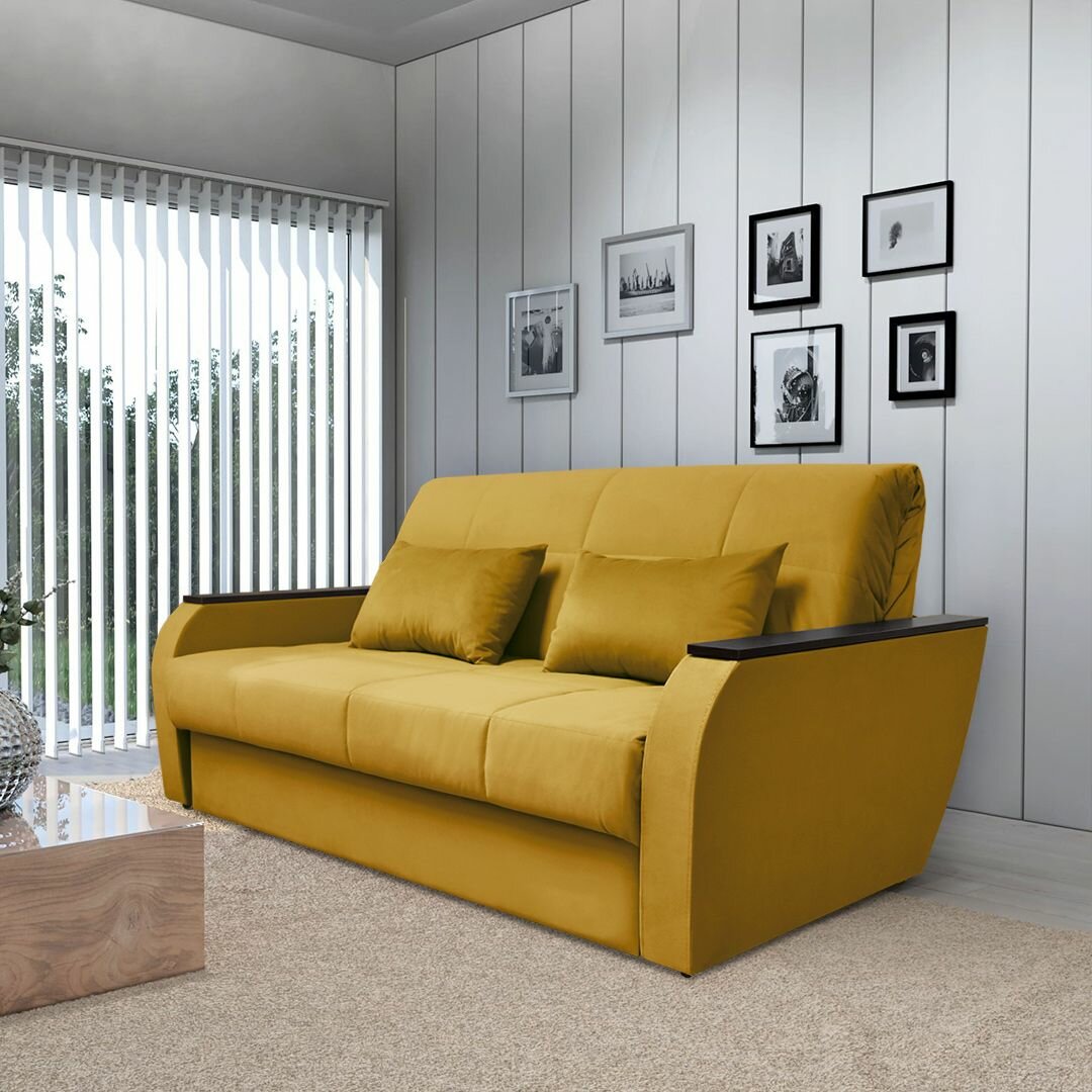 Диван-кровать Ah!Divan Креско М 165х103х87 см со съемным чехлом, механизм аккордеон, горчичный, велюр