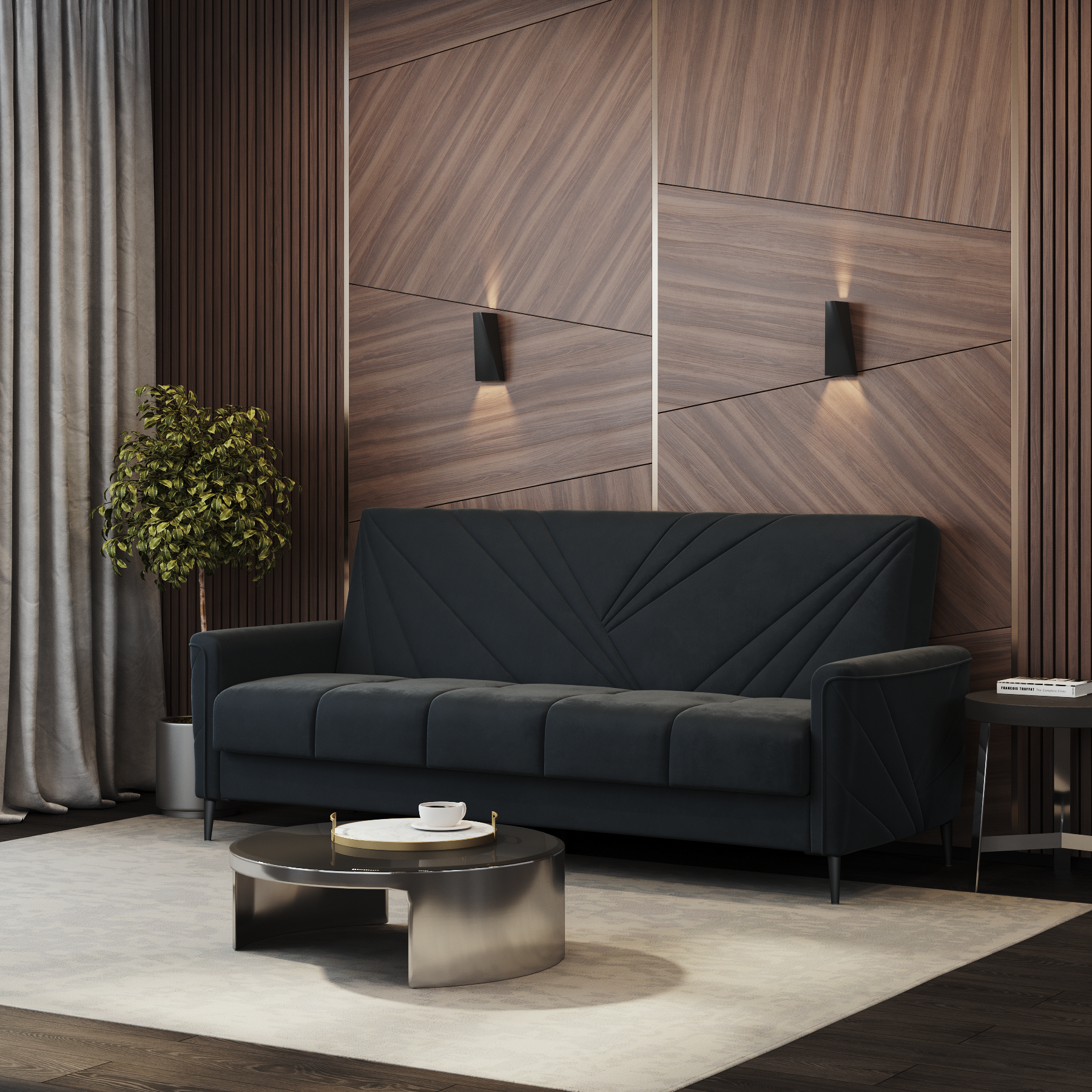 Диван-книжка Kёльн Велюр чёрный / ножки - коричневые Djivani