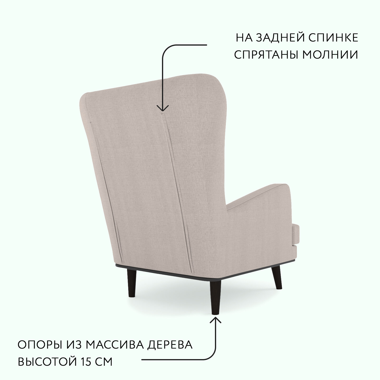 | Особенности | без колесиков, с ножками, с подлокотниками, с подушкой, съемный чехол |