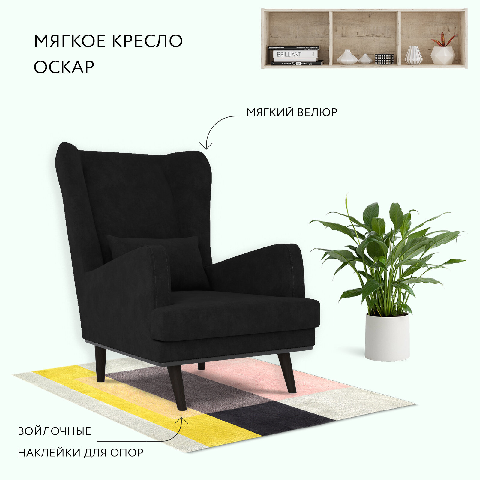 Кресло ОБСТАНОВКА. РУ Вегас мягкое с ушами, для дома, велюр Velour 18