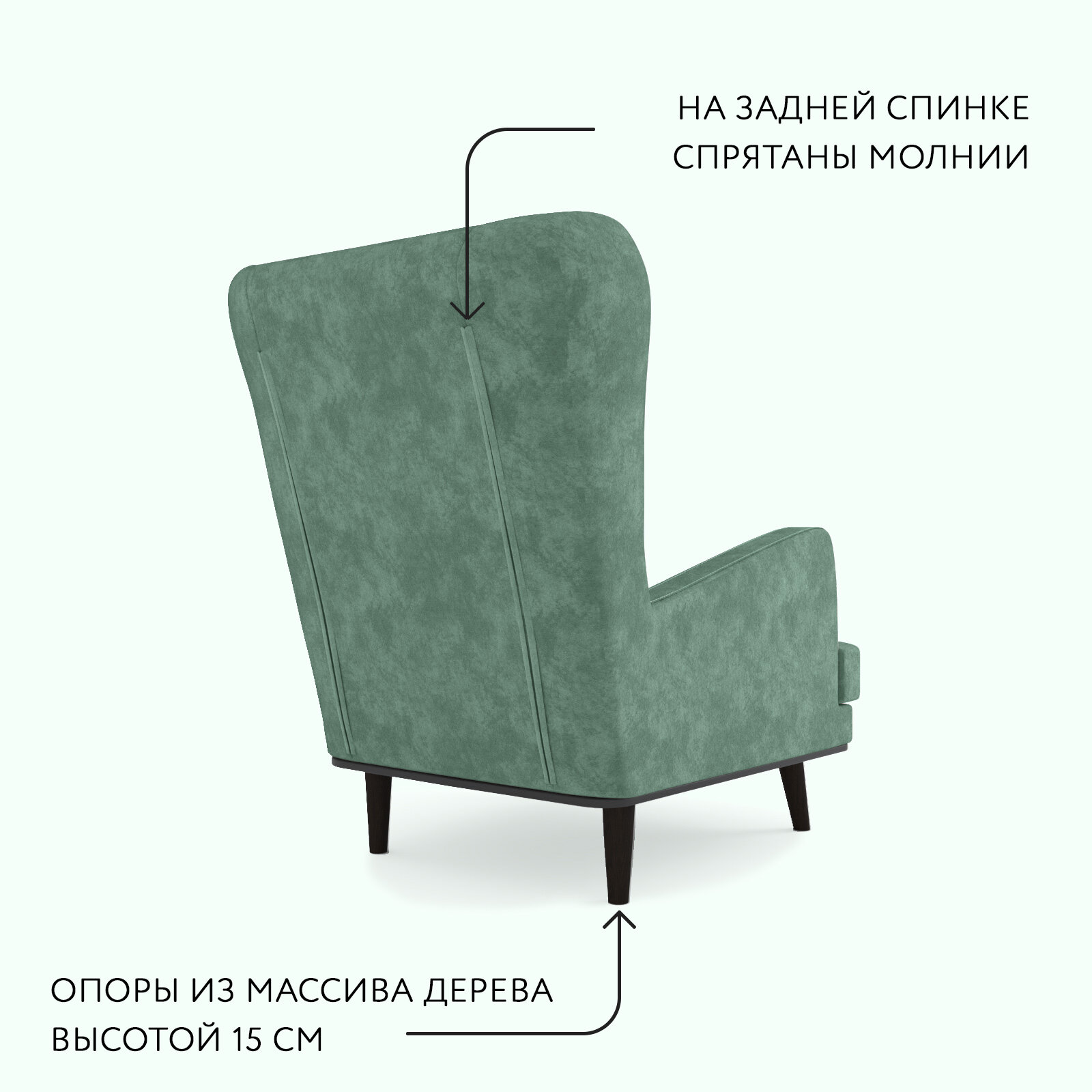 Кресло ОБСТАНОВКА. РУ Вегас мягкое с ушами, для дома, велюр Velour 19