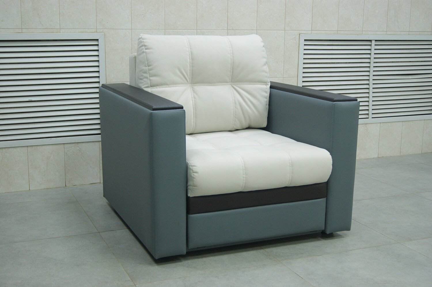 Кресло-кровать Атланта Серый Экокожа, 90х91х88 см, с ящиком для белья