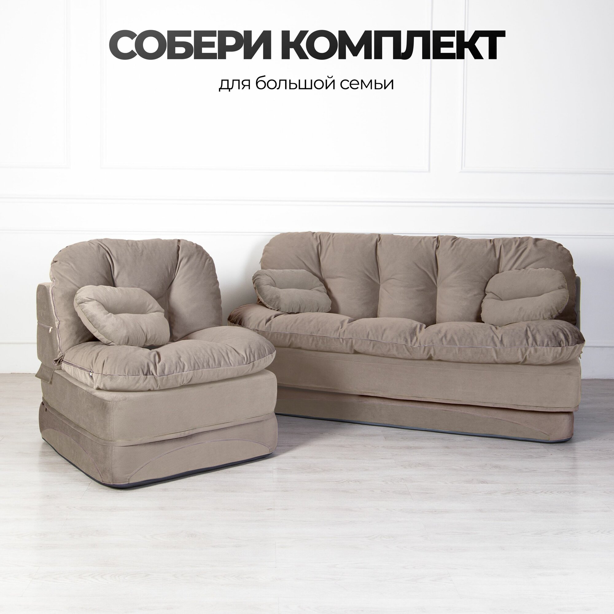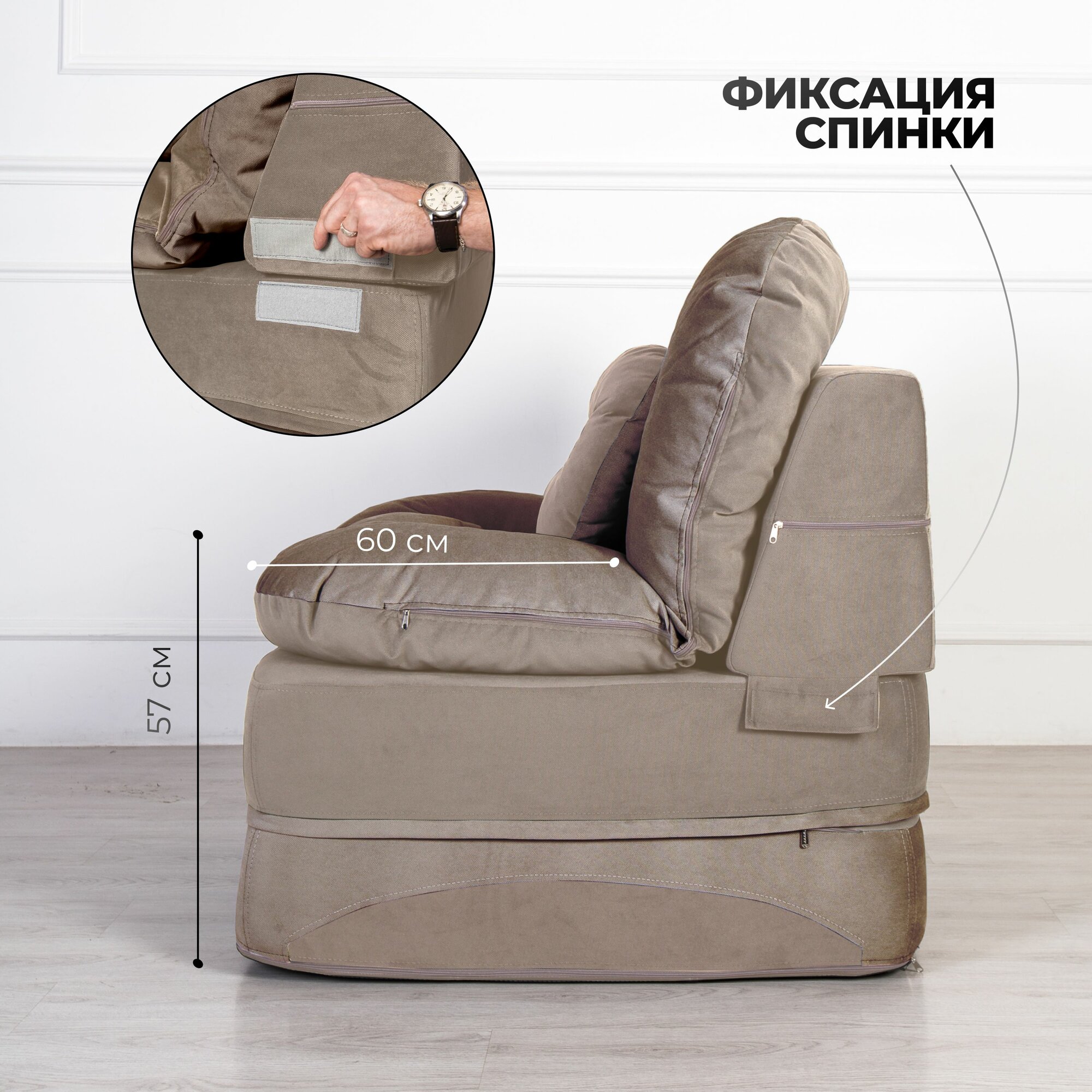 Кресло кровать бескаркасное раскладное 90*95 см с матрасом Клиффорд (Софья),спальное место 230*90 см, коричневое с бежевым