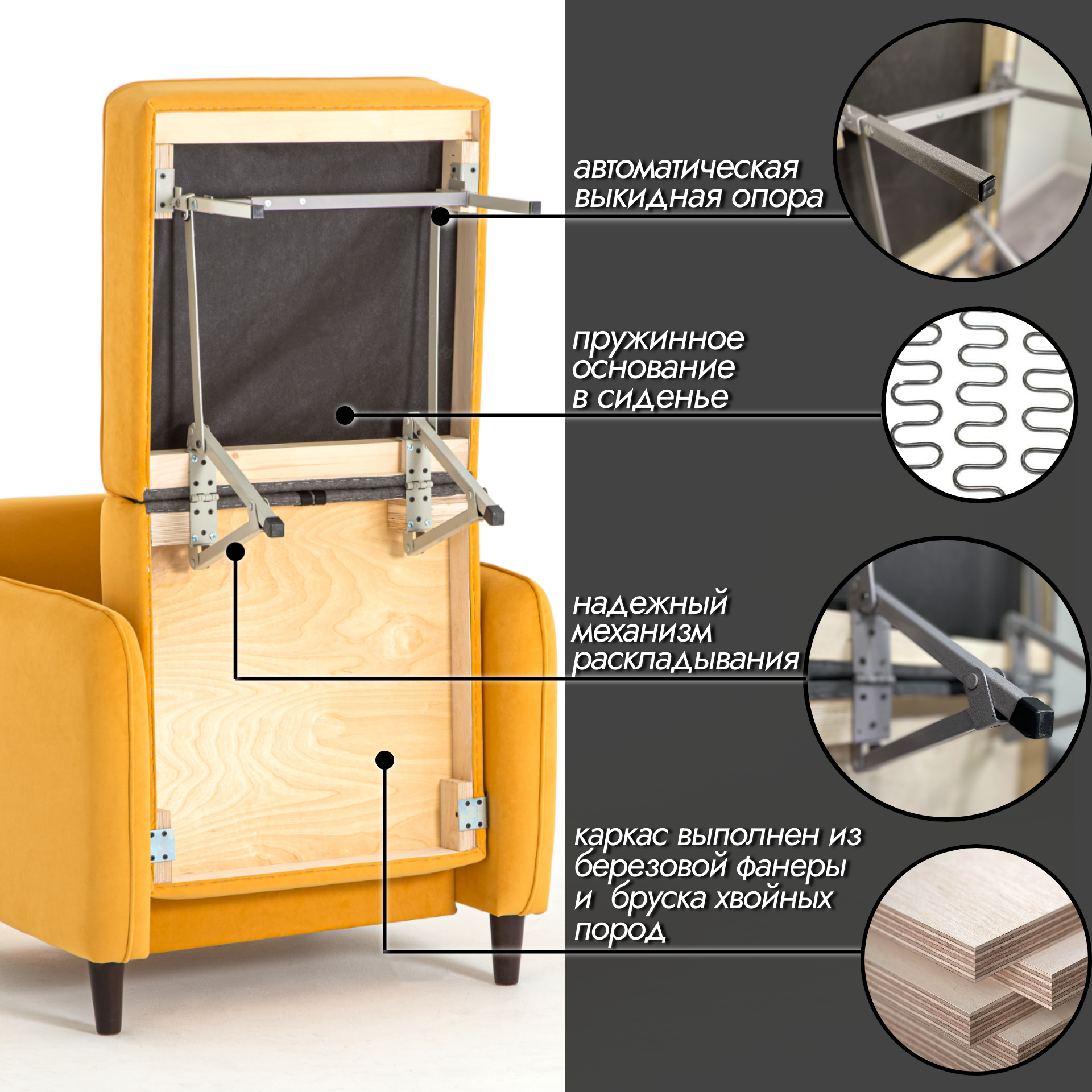 Купить Кресло-кровать Live Line"Mario" 85х87см желтый велюр, на ножках
