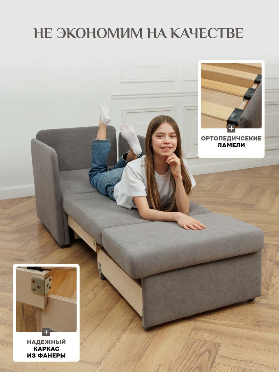 Кресло-кровать на балкон Кресло Brendoss 505 раскладное, без подлокотников, материал износостойкий велюр, цвет серый