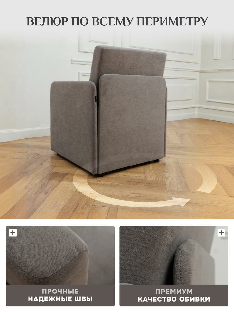 СохранитьКресло-кровать на балкон Кресло Brendoss 506 раскладное, с подлокотниками, материал износостойкий велюр, цвет серый интересное: