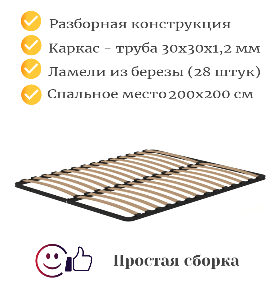 Ламельное основание для кровати, 200x200, металл, разборное, ортопедическое интересное: