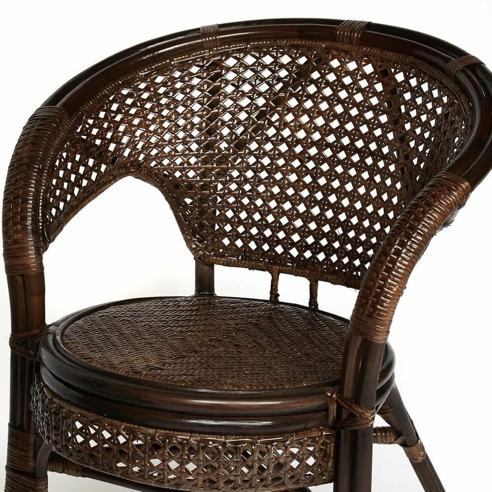 Террасный комплект "PELANGI" (стол со стеклом + 2 кресла) /без подушек/ ротанг, кресло 65х65х77см, стол диаметр 64х61см, walnut (грецкий орех)