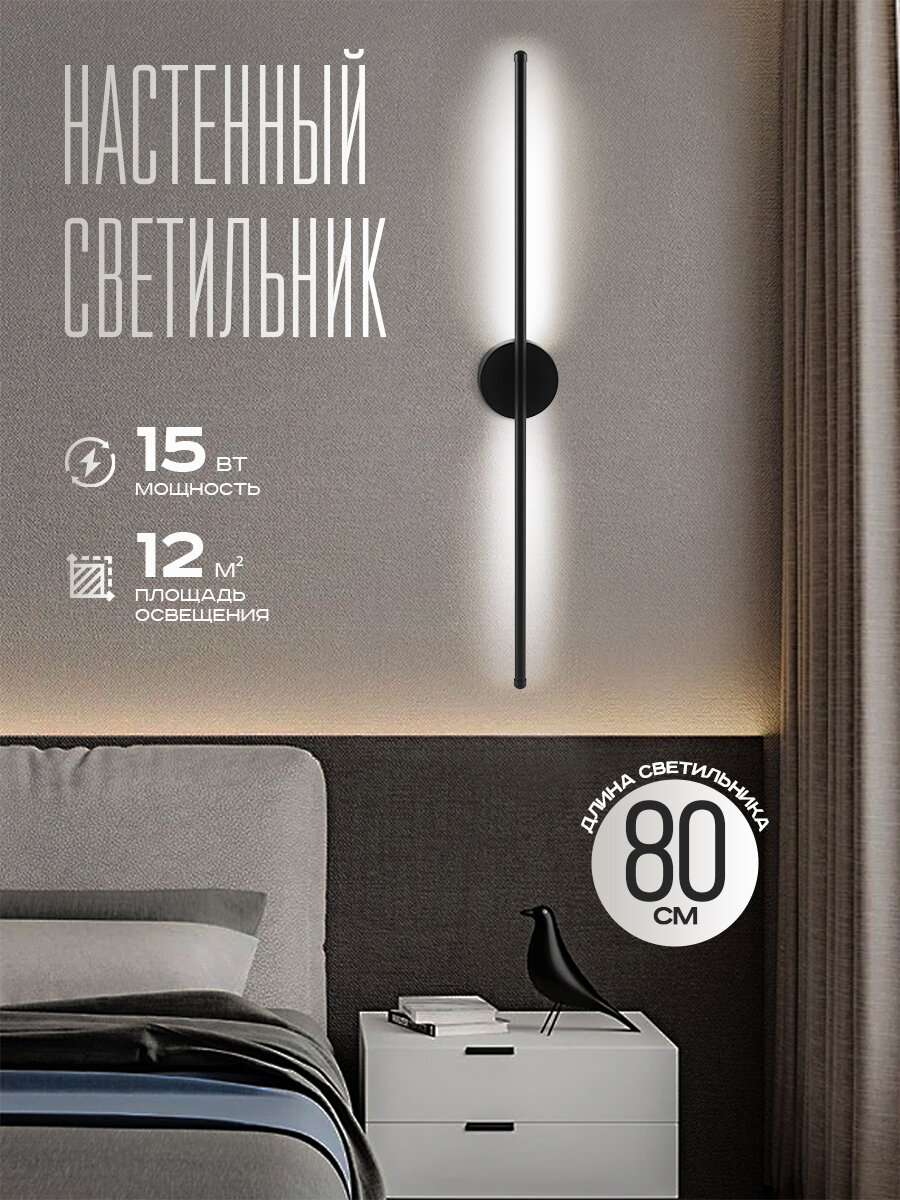 Светодиодный настенный светильник Damas Black матовый черный, 15W, 4000K, бра интересное: