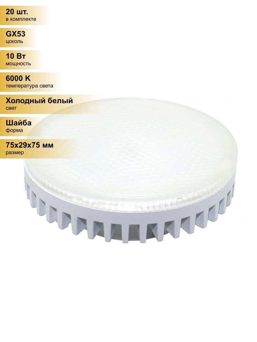 Сохранить(20 шт.) Светодиодная лампочка SmartBuy GX53 св/д 10W(800lm) 6000K 6K 75x29 матов. стекло SBL-GX-10W-6K Холодный белый. Цоколь GX53 интересное: