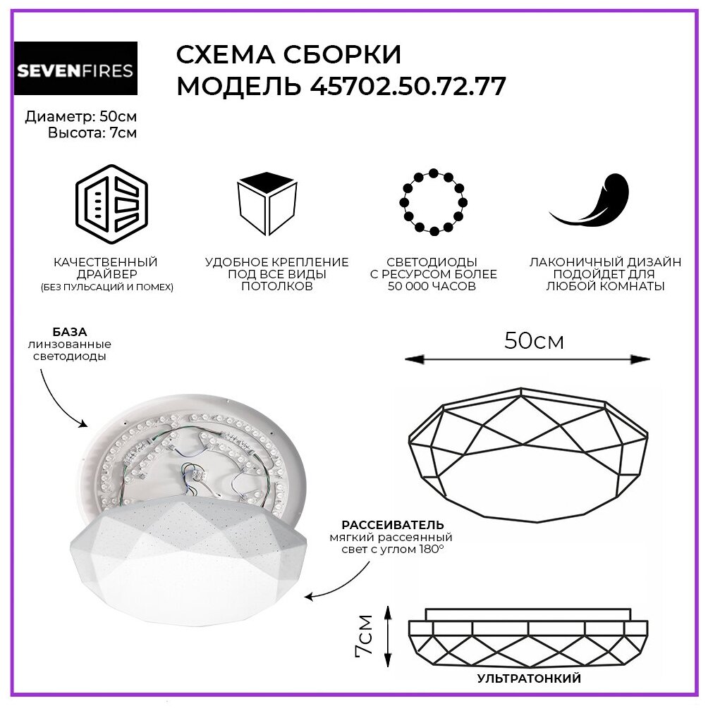 Светильник светодиодный, настенно-потолочный Семь Огней 45702.45.90.77 управляемый