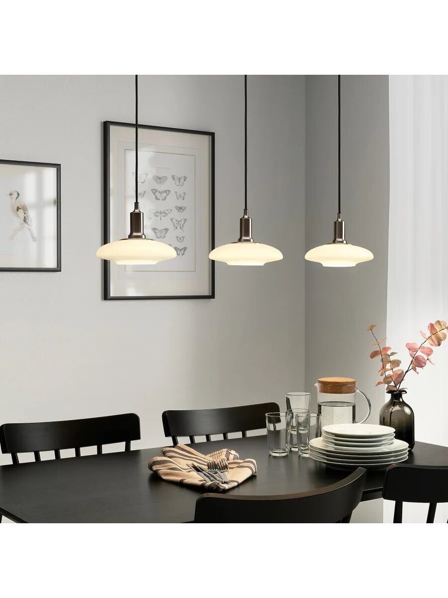 TÄLLBYN тэлльбюн подвесной светильник с 3 лампами 89 см никелированный/молочный стекло