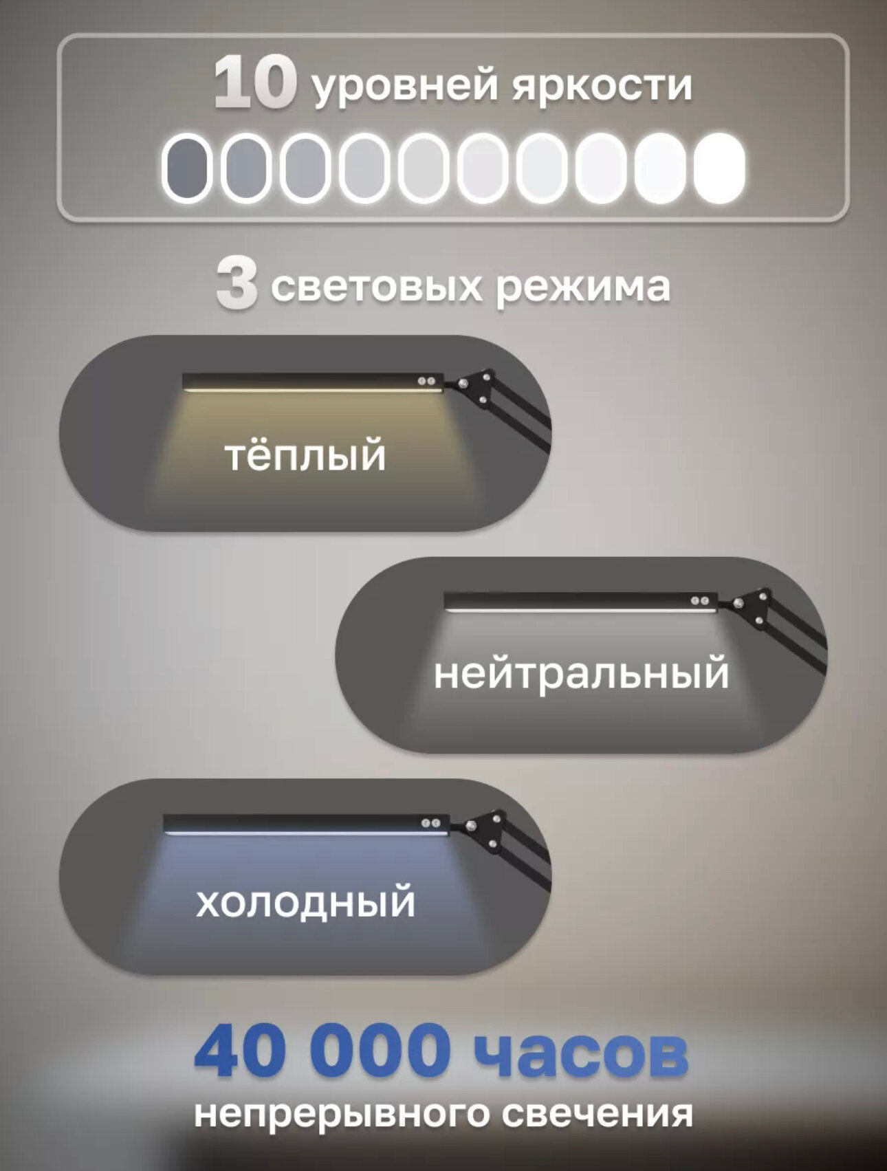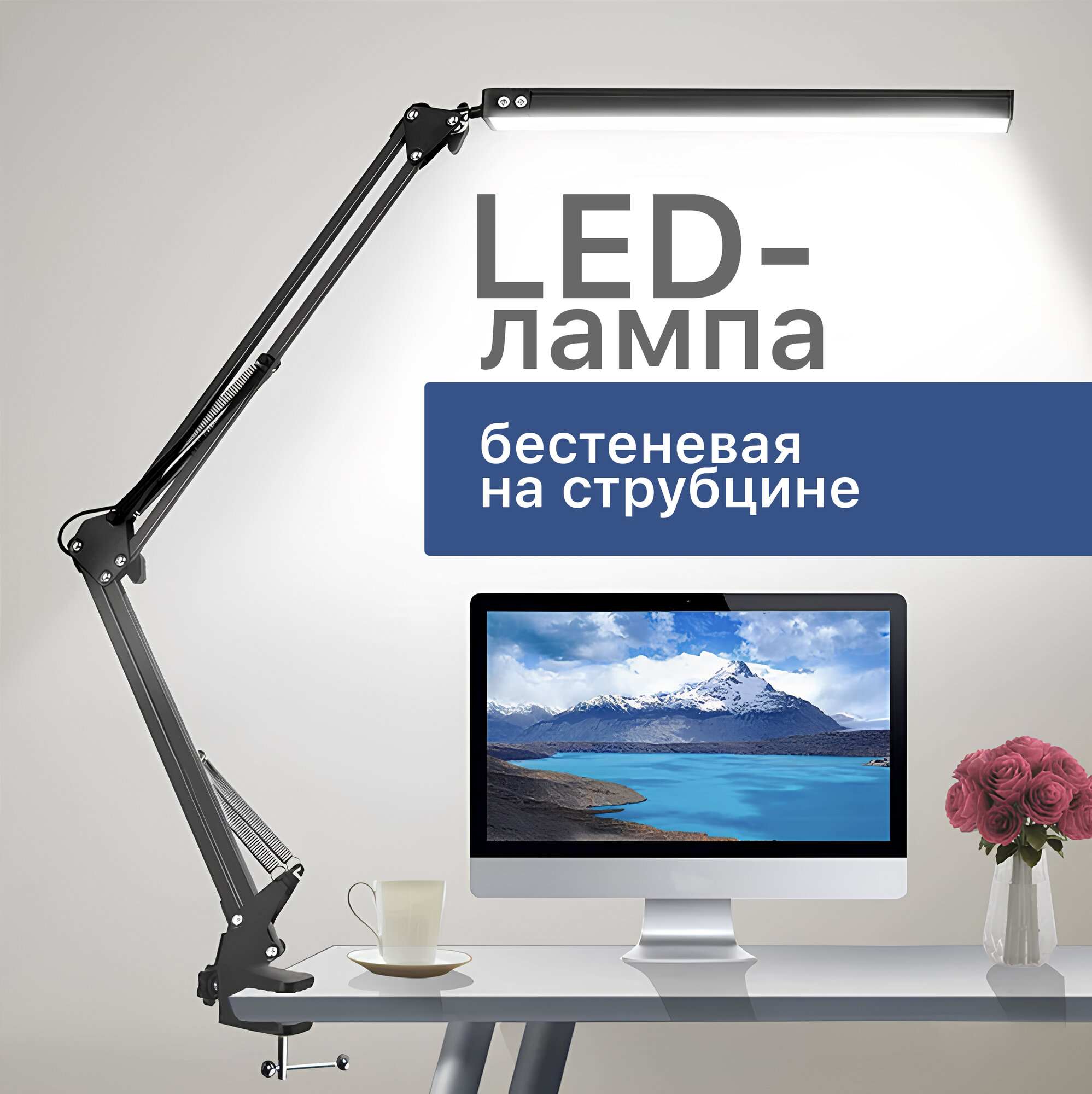 Лампа LED, бестеневое освещение, струбцина, черный интересное: