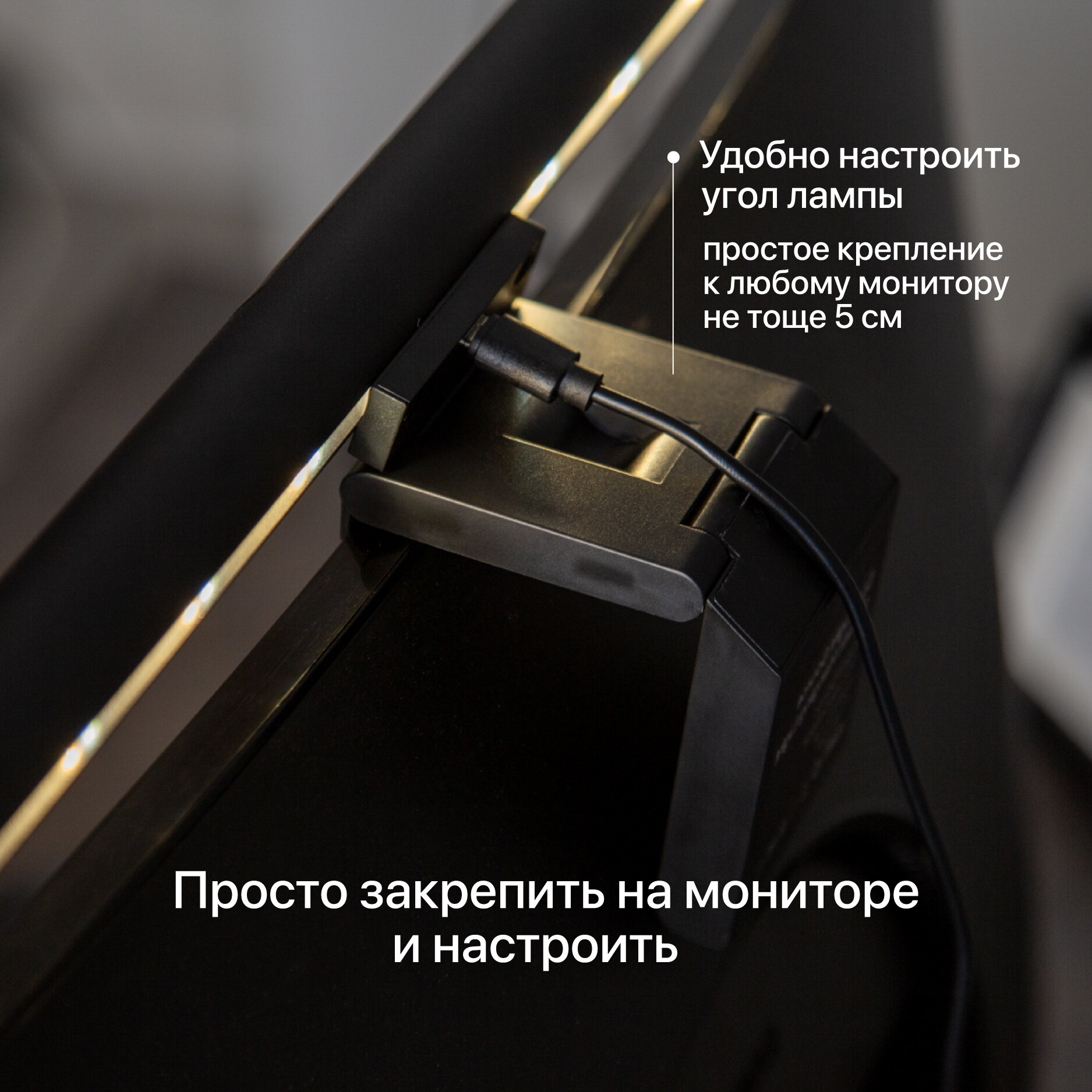 | Дополнительная информация | Лампа для экрана монитора осветит клавиатуру и зону рабочего стола перед экраном. Светильник формирует бестеневое освещение, которое при длительной работе не создает дискомфорта и не ослепляет яркостью. Лампу можно подключить к компьютеру или ноутбуку, и она будет автоматически включаться вместе с ним. |