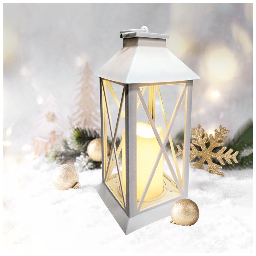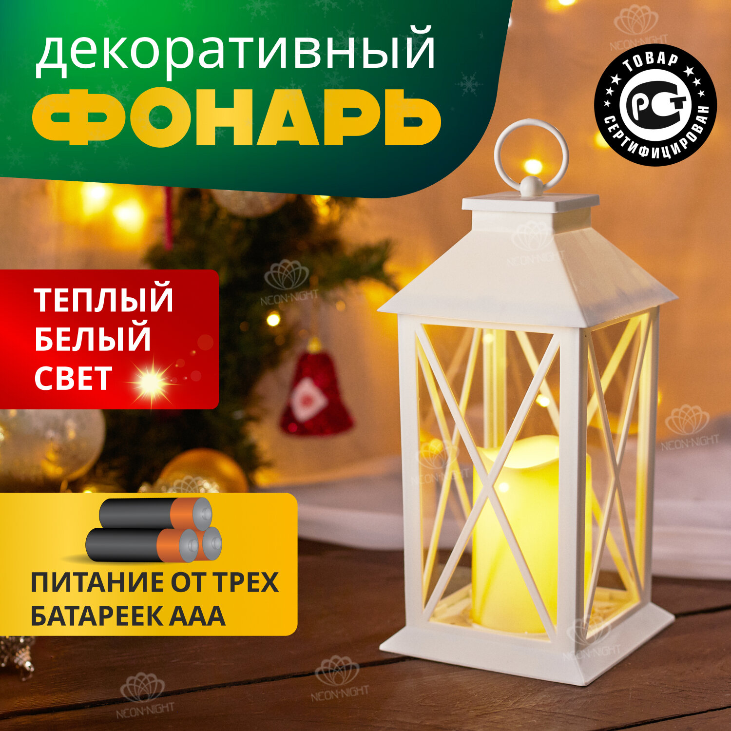 Светодиодный фонарь-светильник Neon-night 29 см белый со свечой тепло-белого цвет свечения .