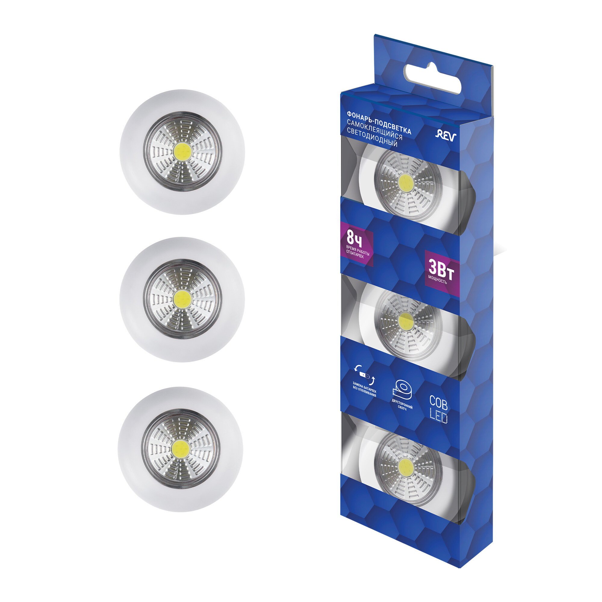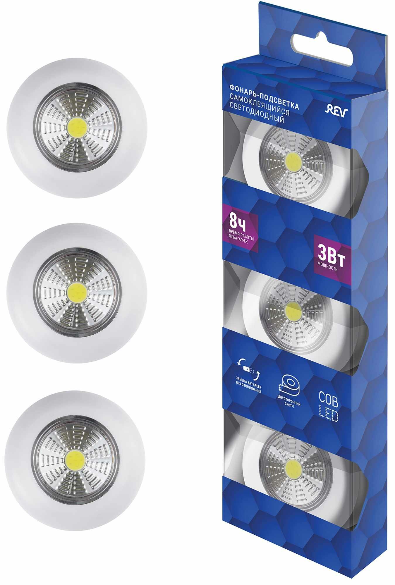 Светодиодный самоклеящийся фонарь-подсветка Pushlight 3Pack белый COB 3 Вт 3xAAA REV Ritter 29098 8