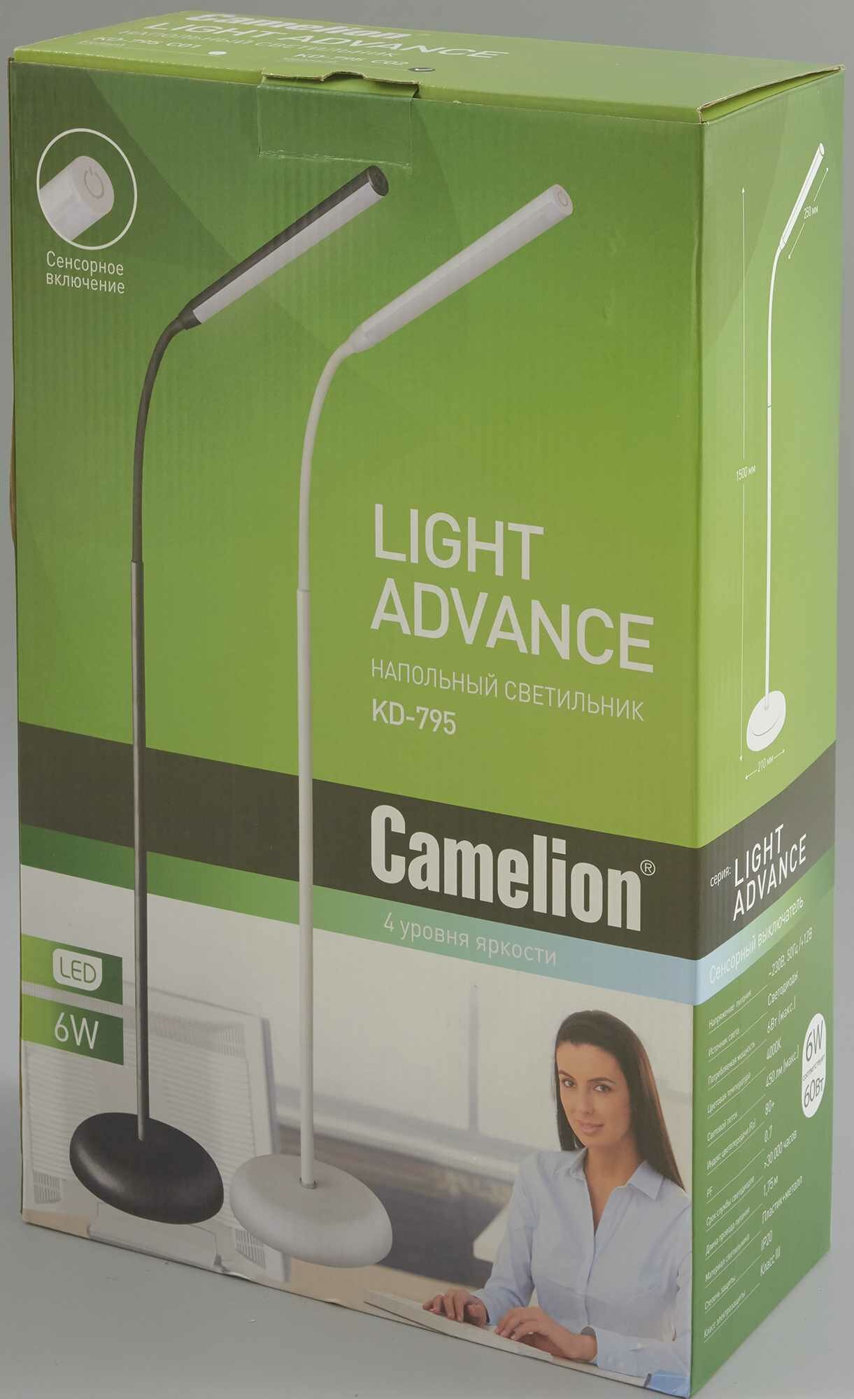 Светильник напольный Camelion KD-795, белый, светодиодный, 7 Вт, 4 уровня яркости, сенсорный (12494)