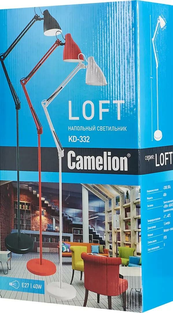 Camelion KD-332 C01 белый (Светильник напольный, торшер, 230V, 40W, E27) .