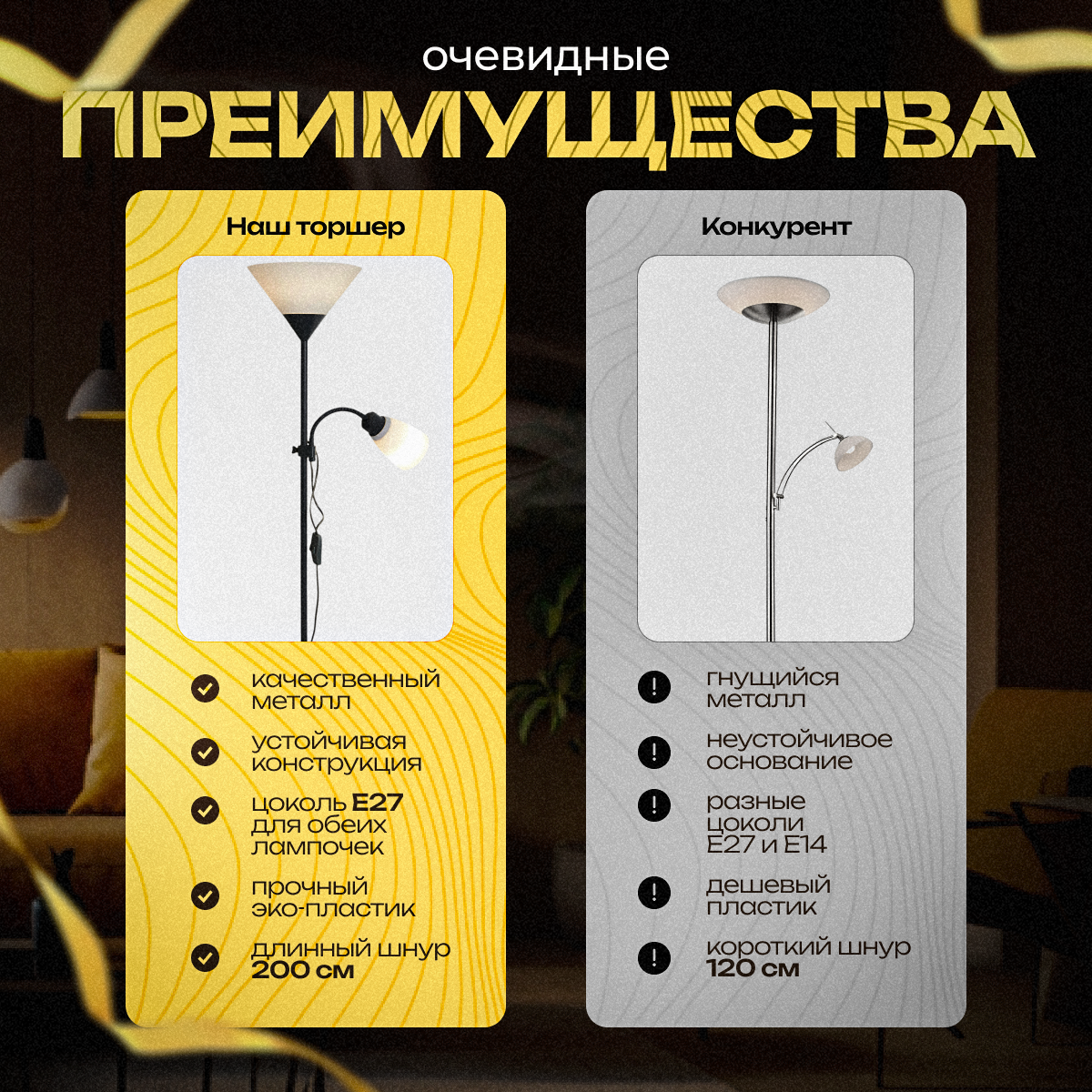 Торшер напольный Fourant Loft, металлический, темно-серый, E27 интересное: