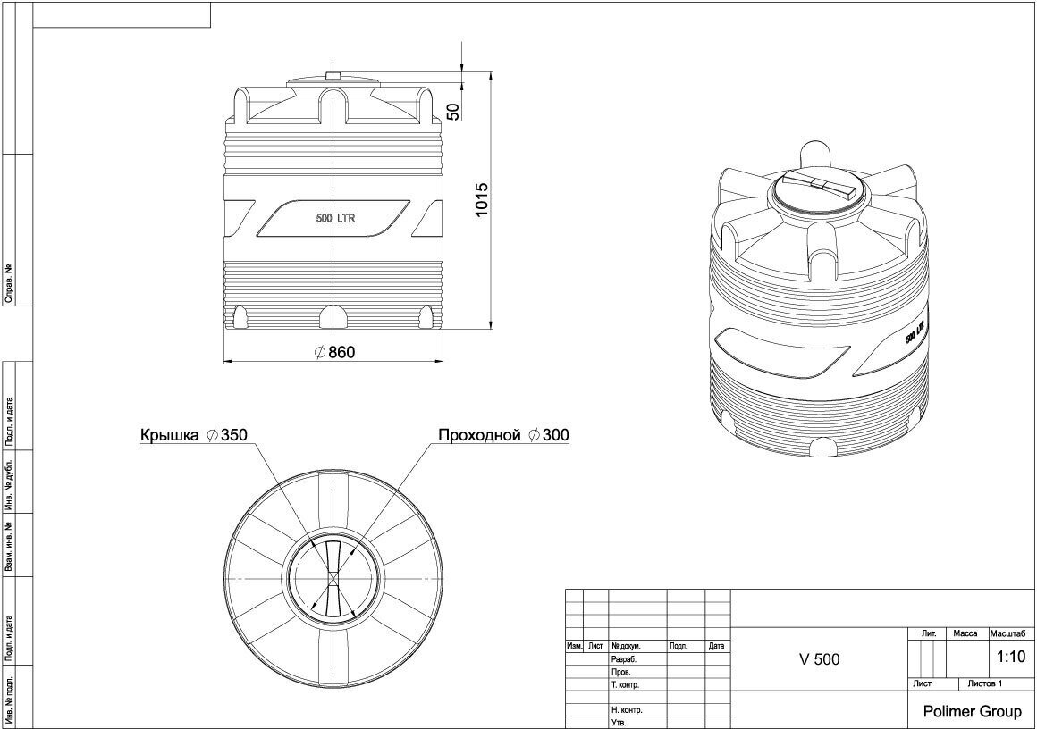 Емкость 500 литров Polimer Group V500 для воды/ топлива/ цвет синий интересное: