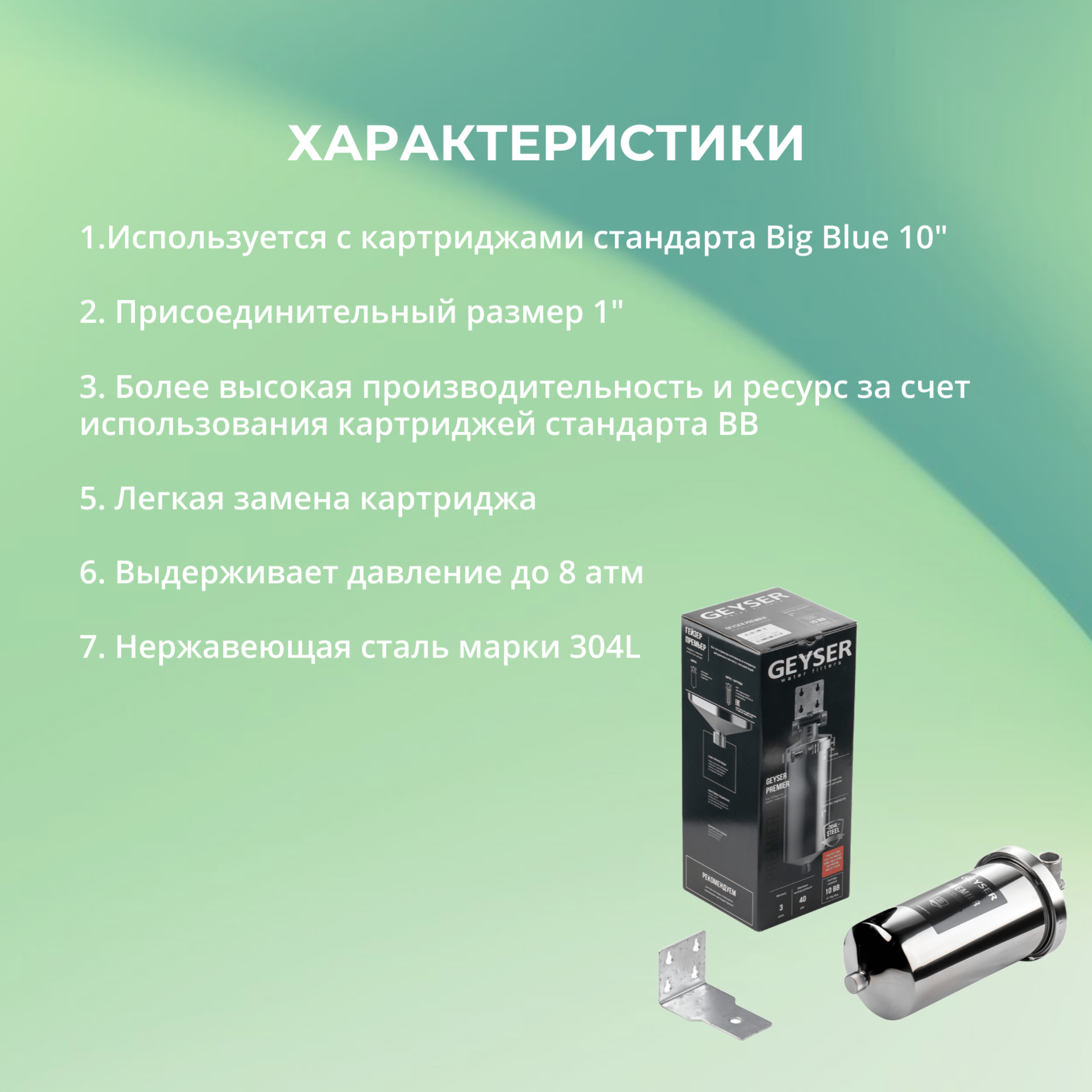 Корпус магистрального фильтра Гейзер-Премьер 10BB 1" для горячей и холодной воды Артикул: 50754 интересное: