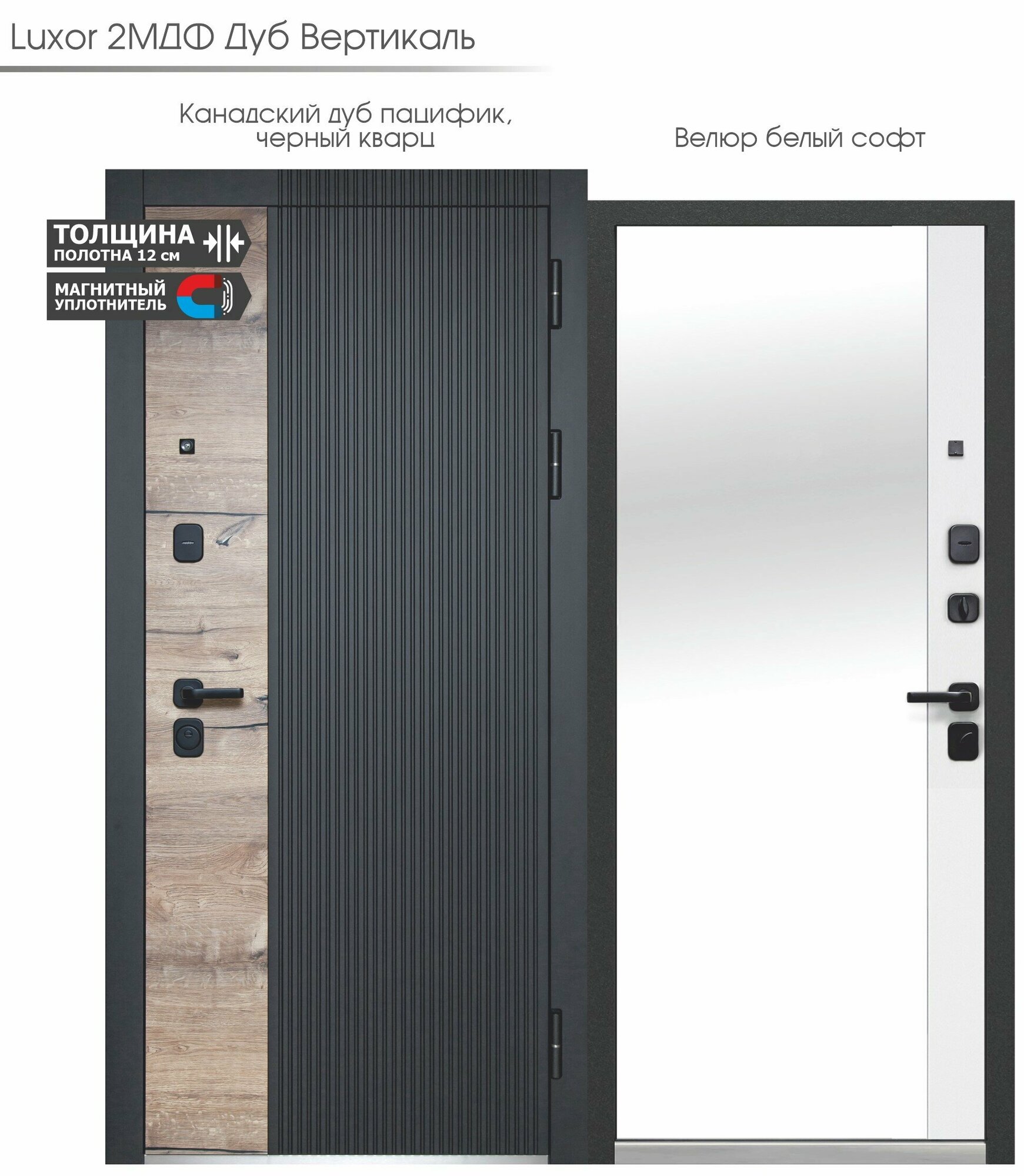 Входная дверь Luxor 2МДФ Дуб Вертикаль Зеркало (860мм) левая