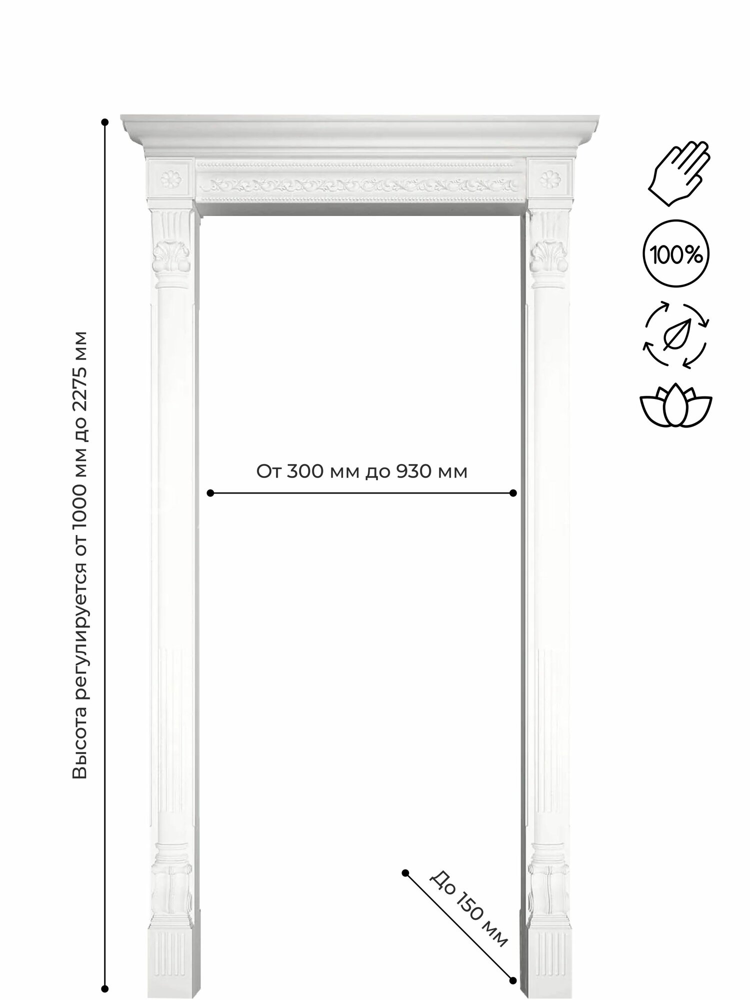 Межкомнатная арка Лесма Стиль, белый ясень, МДФ/ПВХ, охватывающая, телескопическая, доборные