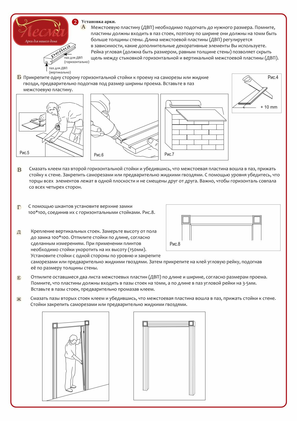| Подробная комплектация | Арочный элемент - 4 шт. Стойка - 4 шт. Межстоевая пластина (ДВП 3 мм): ПВХ - 3 листа. Импост - 2 комплекта (боковинки 4шт, стыковочные планки 2шт) Декоративный замок: 2 шт. - для универсального размера, 4 шт. - для арок со сводорасширителем. Инструкция по сборке, рейки. |