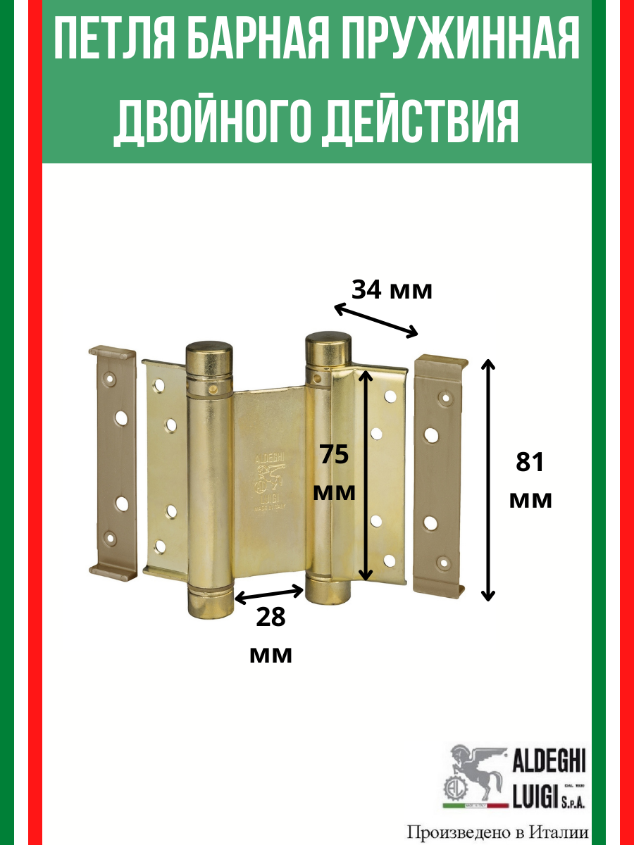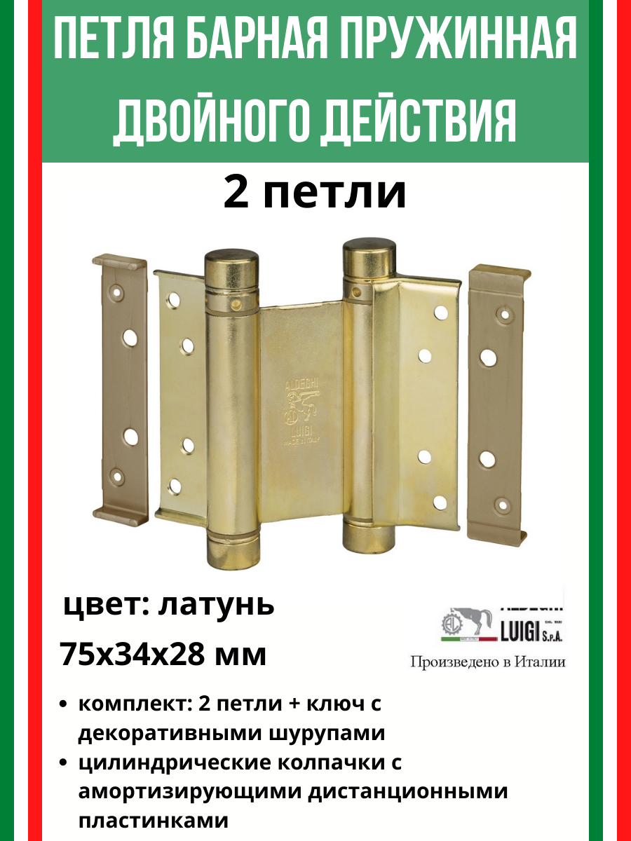 Барная пружинная петля двойного действия ALDEGHI LUIGI S.p.A. 125х48х42 мм, цвет: латунь, к-т: 2 шт + ключ с декоративными заглушками