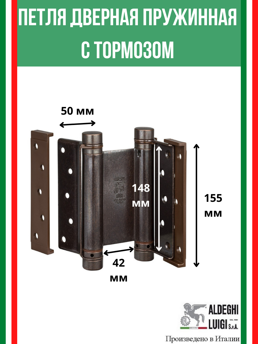 Барная пружинная петля двойного действия ALDEGHI LUIGI SpA 125х48х42 мм, бронза, к-т: 2 шт + ключ с декоративными заглушками, 101AB125B