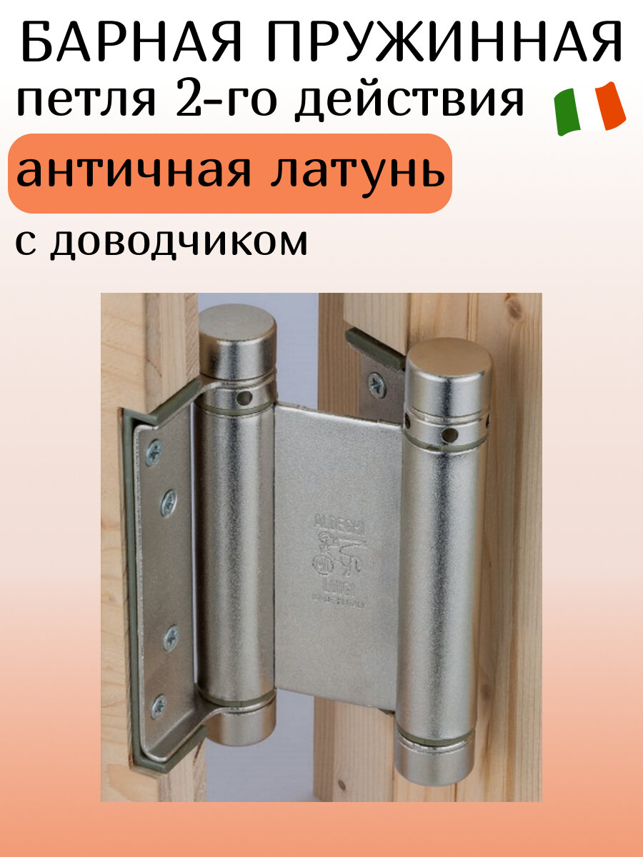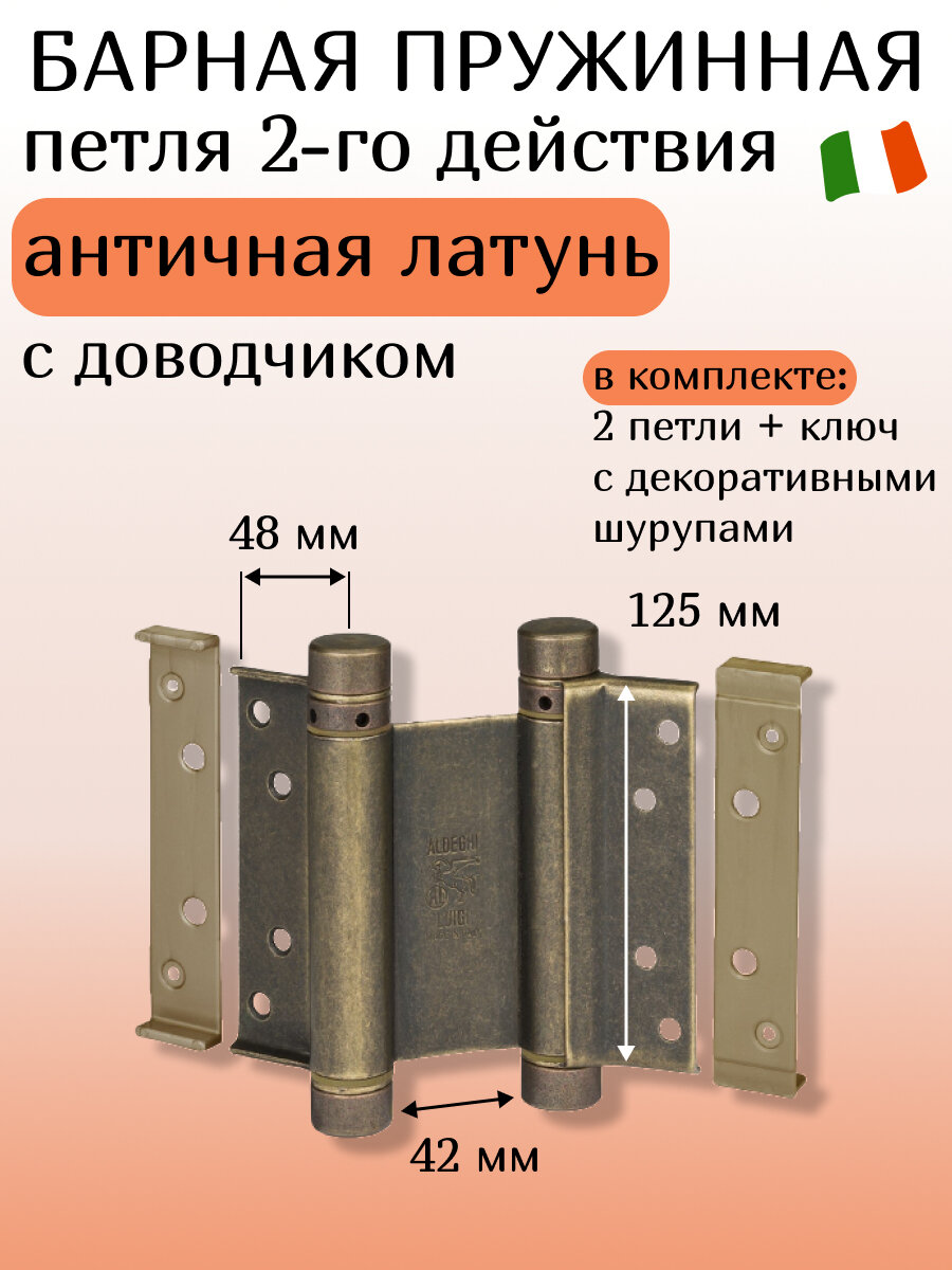 Барная пружинная петля двойного действия ALDEGHI LUIGI S.p.A. 125х48х42 мм, цвет: античная латунь, к-т: 2 шт + ключ с декоративными заглушками