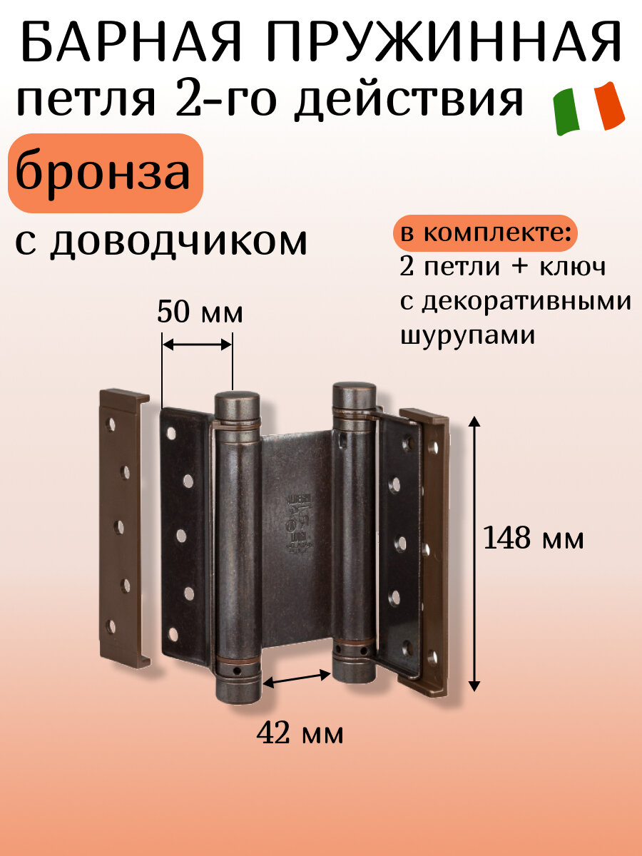 Барная пружинная петля двойного действия ALDEGHI LUIGI S.p.A. 148х50х42 мм, цвет: бронза, к-т: 2 шт + ключ с декоративными заглушками