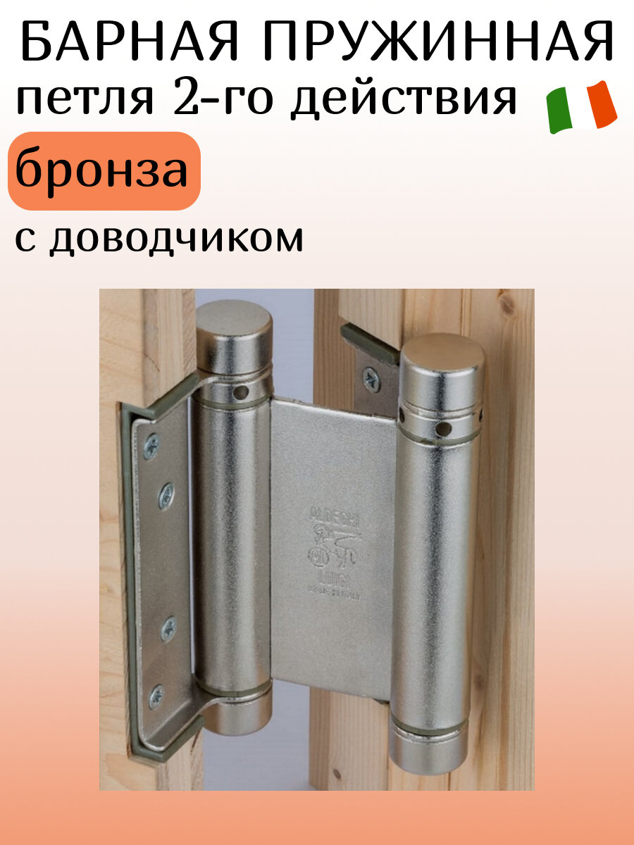 Барная пружинная петля двойного действия ALDEGHI LUIGI SpA 125х48х42 мм, бронза, к-т: 2 шт + ключ с декоративными заглушками, 101AB125B