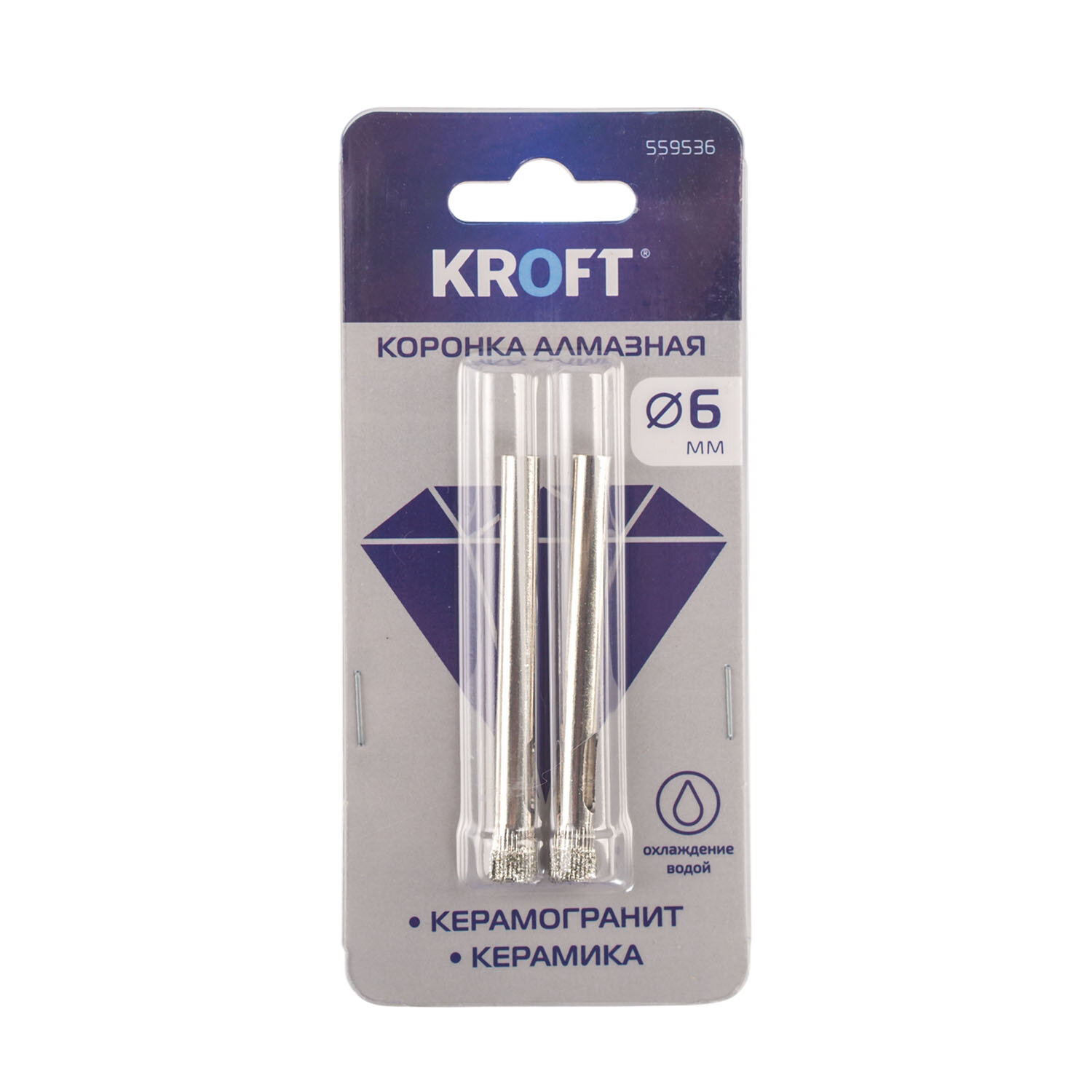 Купить Коронка алмазная по керамике 6 мм 2 шт цилиндрический хвостовик KROFT