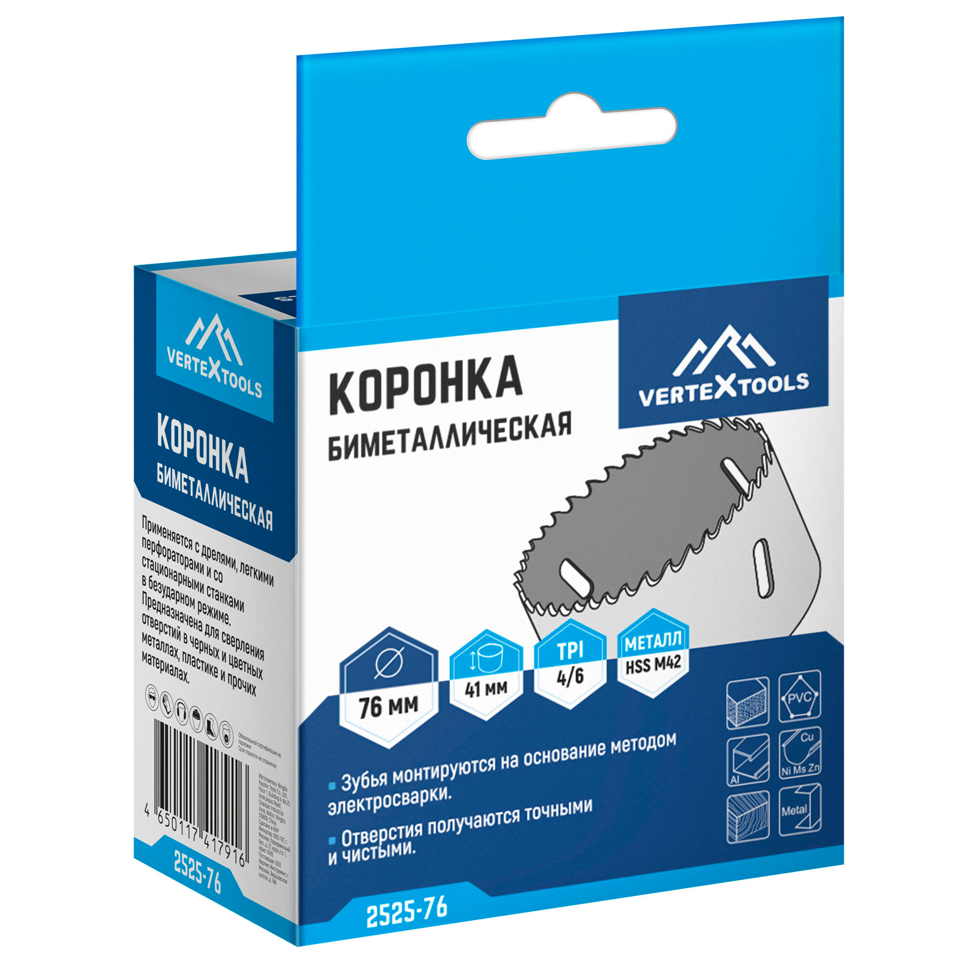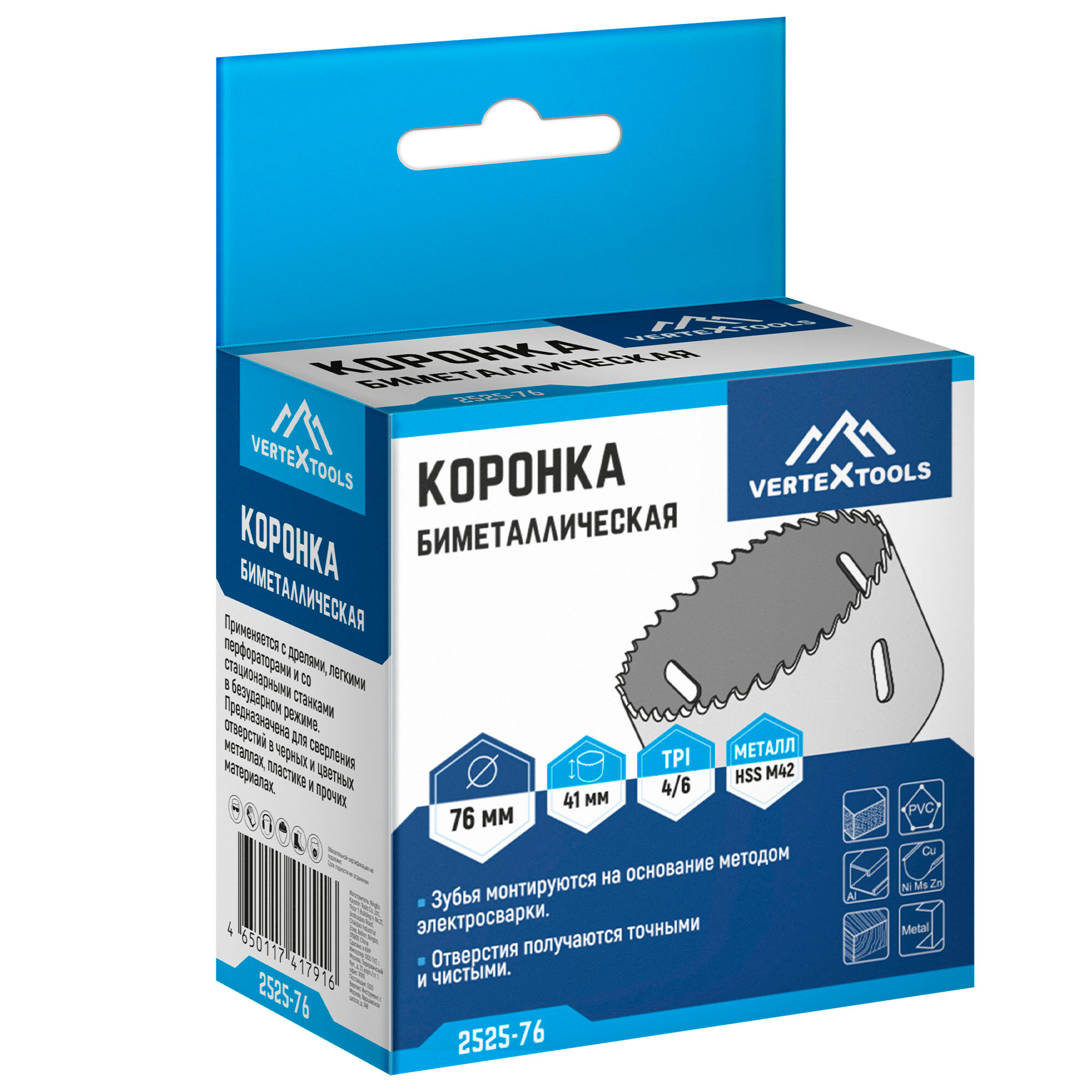 Купить Коронка по металлу 76 мм VertexTools биметаллическая, HSS M42