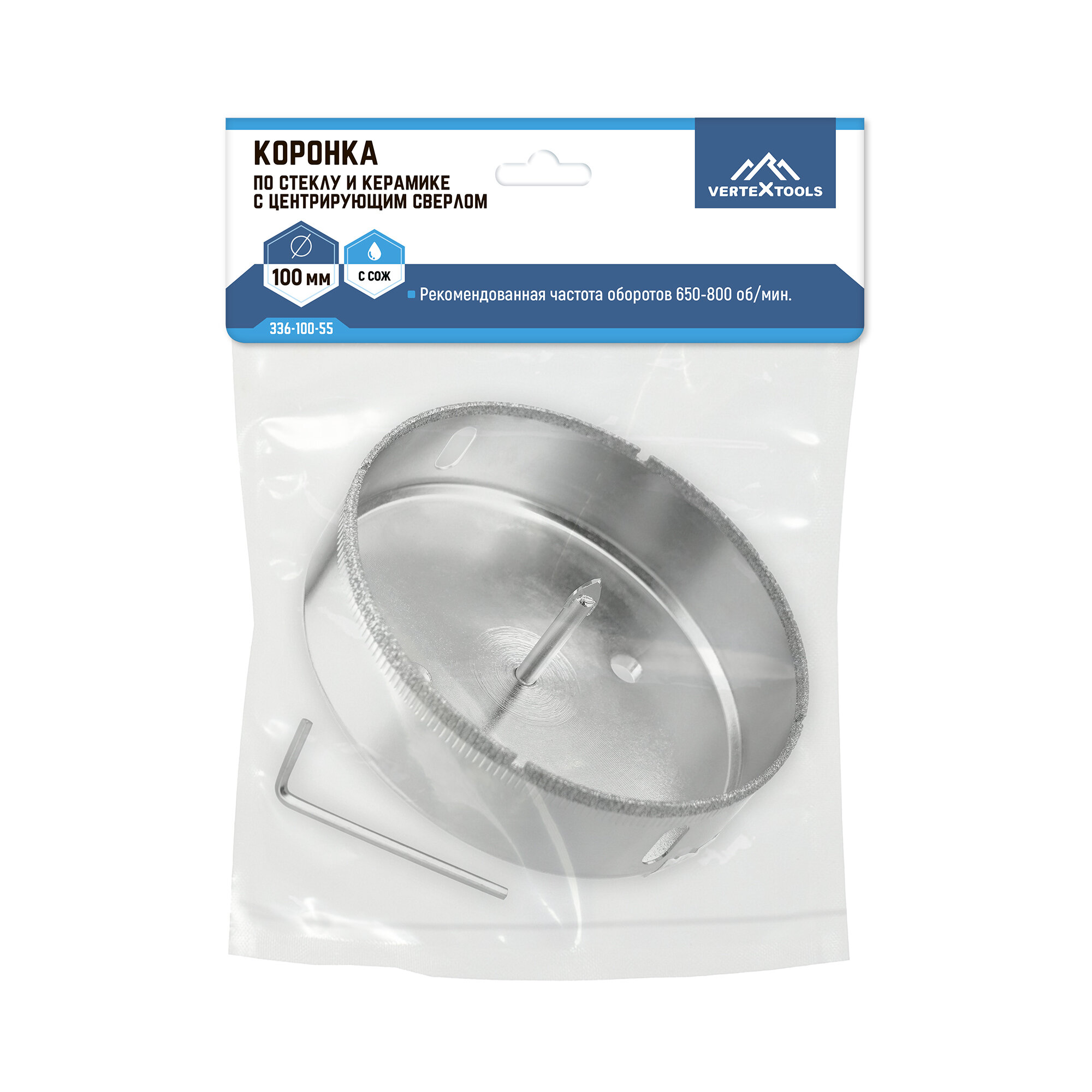 Купить Коронка по стеклу и керамике 100X55 VertexTools с центрирующим сверлом, CRv