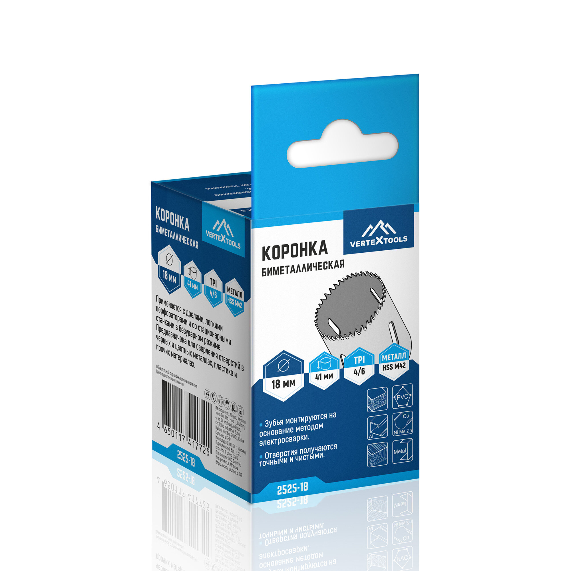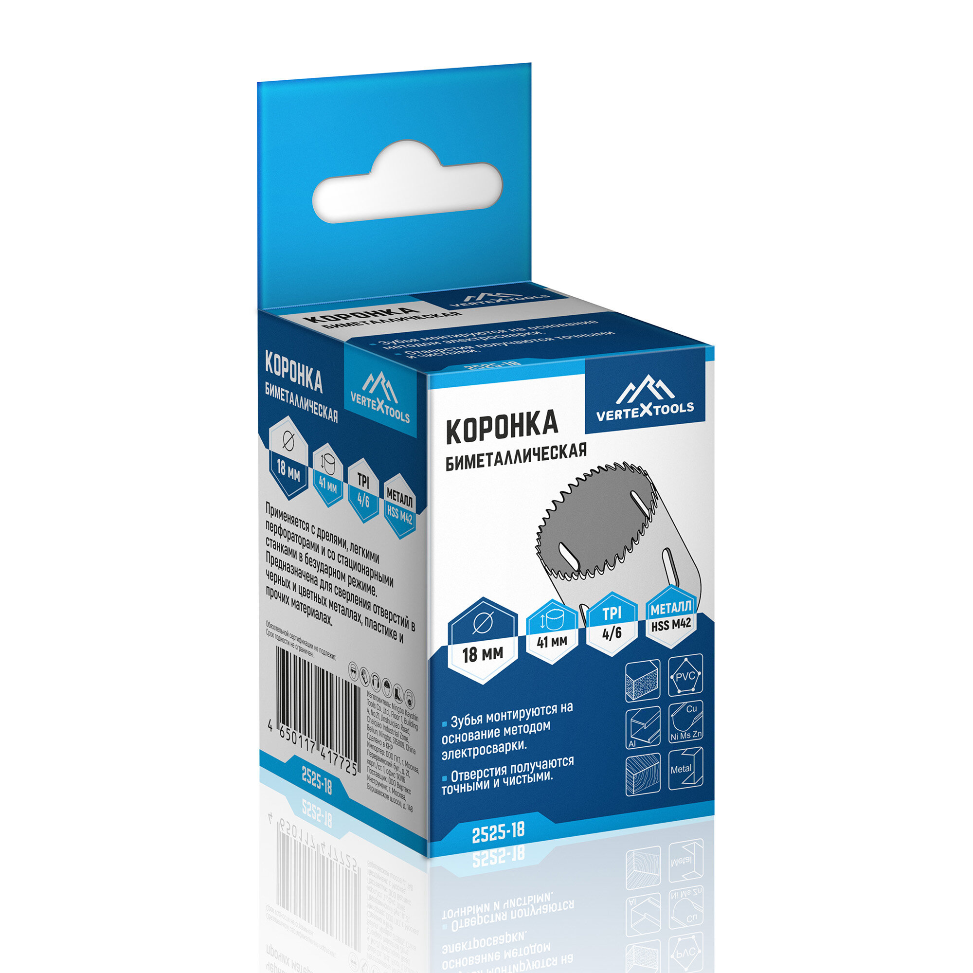 Купить Коронка по металлу 18 мм VertexTools биметаллическая, HSS M42