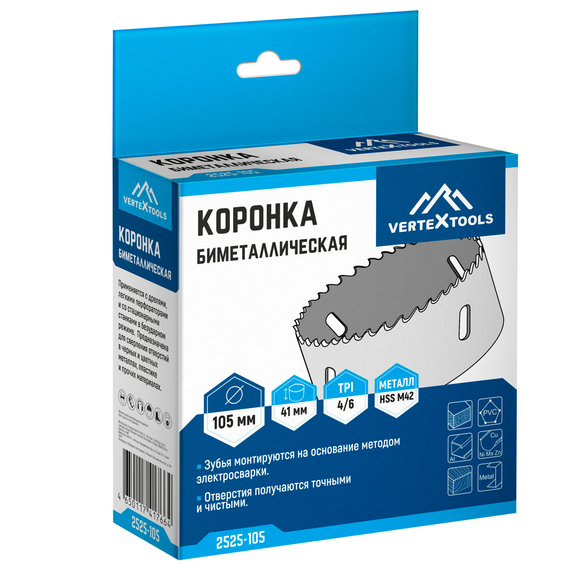 Купить Коронка по металлу 105 мм VertexTools биметаллическая, HSS M42