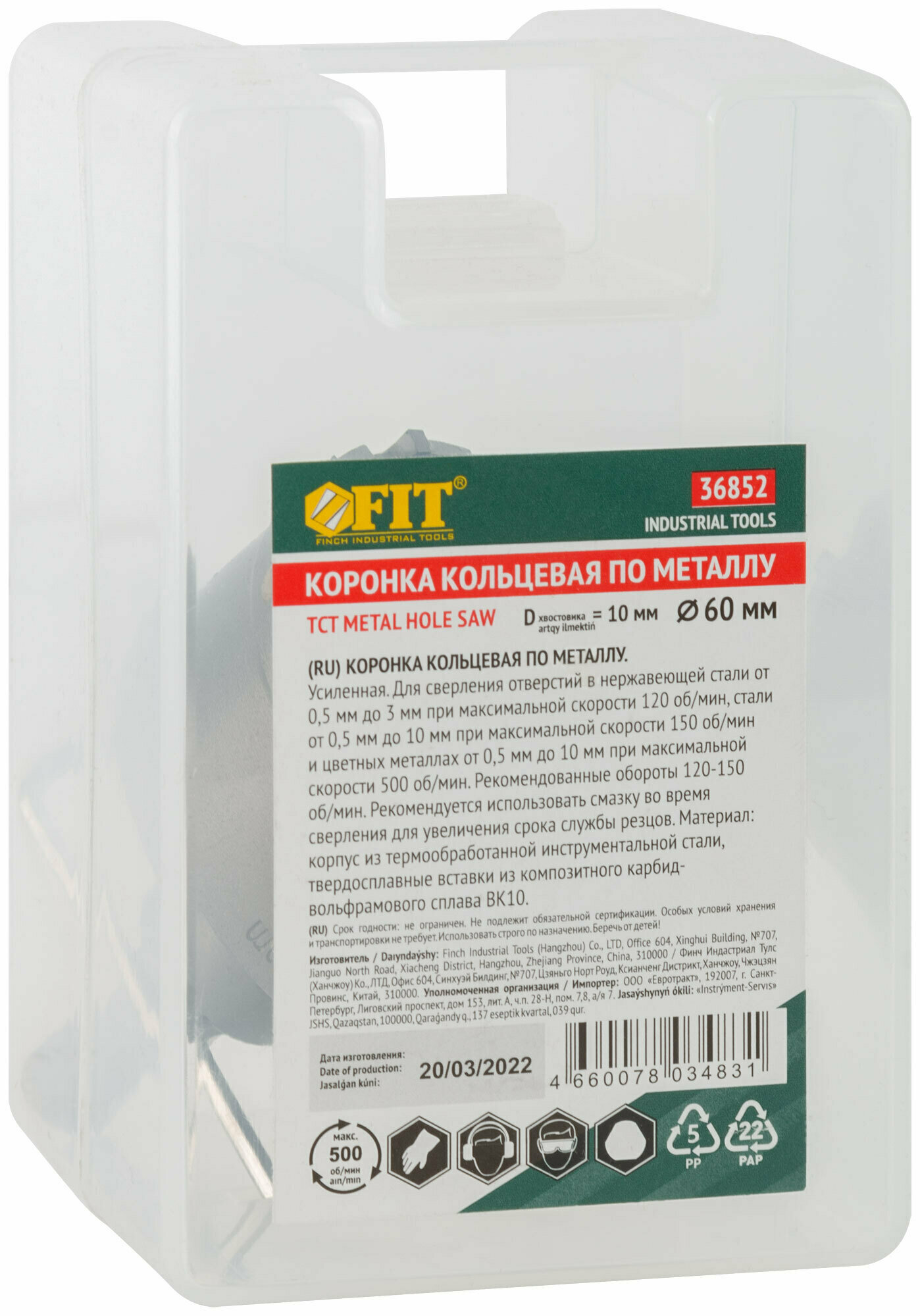FIT Коронка кольцевая с карбидными вставками Профи (для отверстий в нержавеющей стали) 60 мм 36852