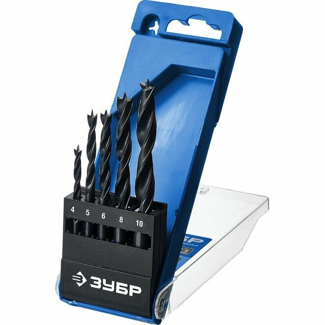 Набор спиральных сверл по дереву Профессионал, М-образная заточка, ЗУБР 5 шт., 4-5-6-8-10 мм