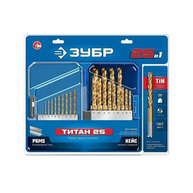 Набор сверл по металлу 25шт (1-13мм) сталь Р6М5, класс А, титановое покрытием ЗУБР 29617-H25 интересное: