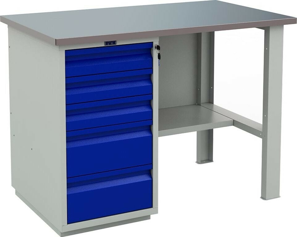 Купить Стол верстак слесарный металлический с тумбой с 5 ящиками, 1200 мм, практик PROFI (№202) WT120. WD5/F1.000