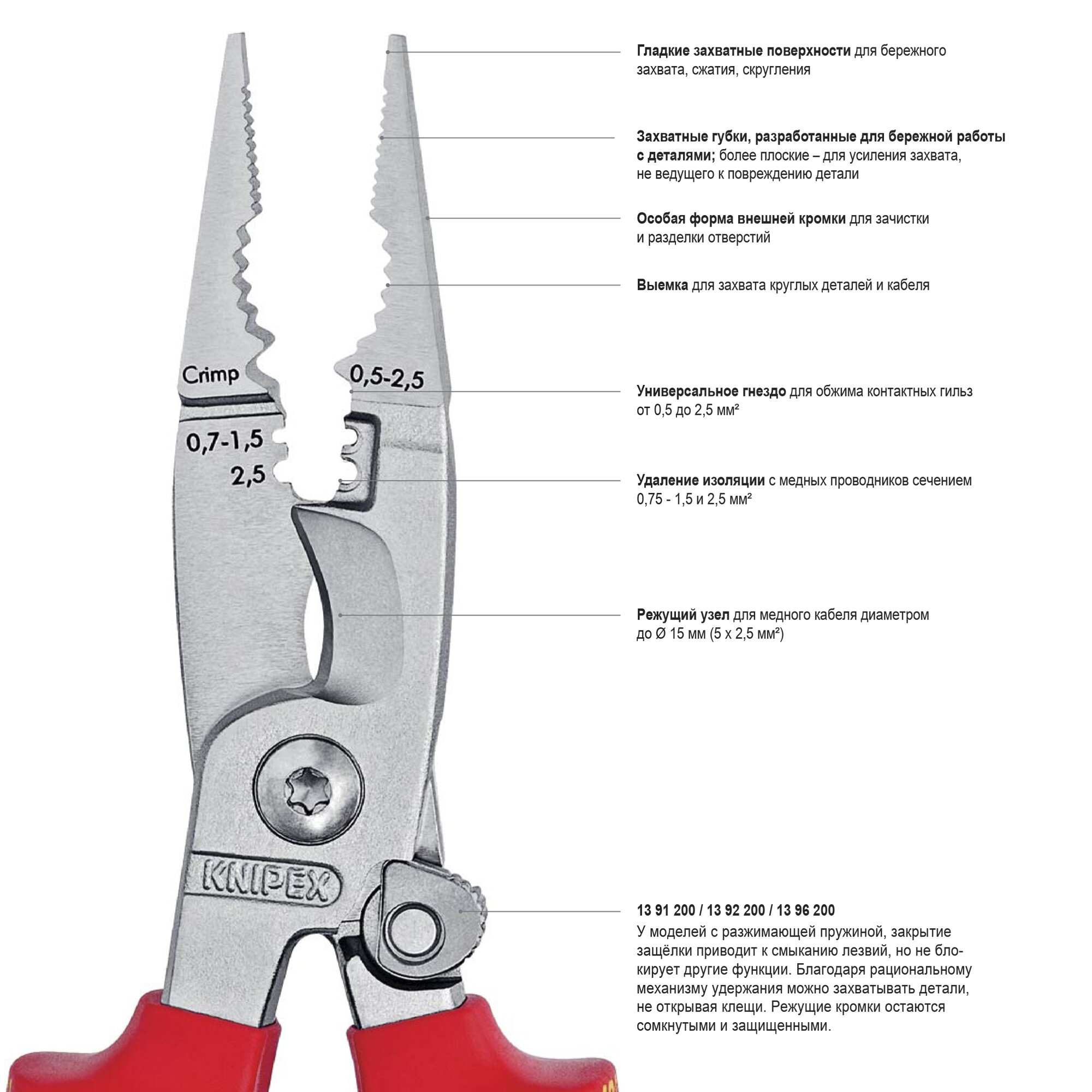 Клещи электромонтажные обжимные 6 в 1, пресс клещи электрика, KNIPEX, 200 мм, 2-комп диэлектрические ручки KN-1386200 интересное: