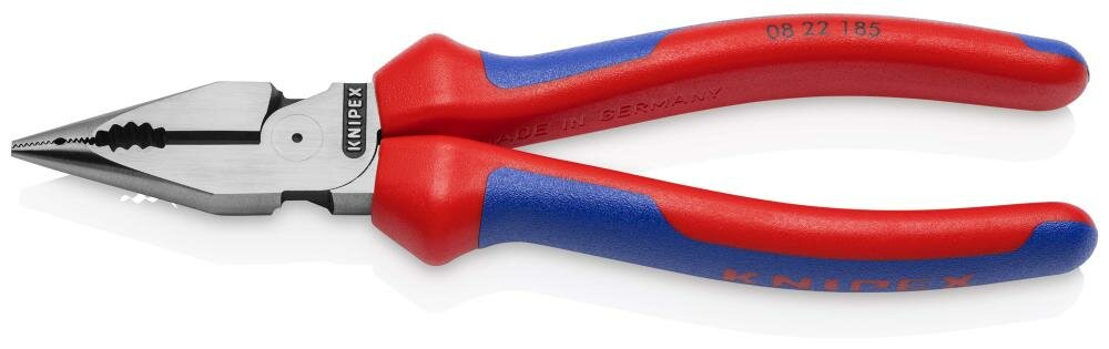 Плоскогубцы KNIPEX комбинированные остроконечные с удлинёнными губками, длина 185 мм, фосфатированные, 2-комп ручки KN-0822185