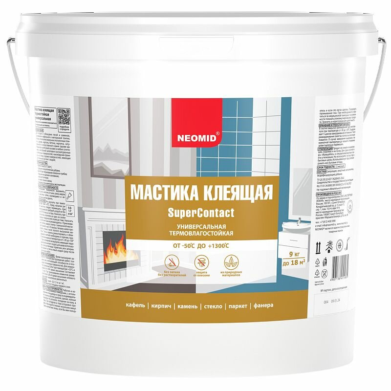 Мастика жаростойкая клеящая универсальная Neomid для внутренних и наружных работ, термостойкая, 9 кг