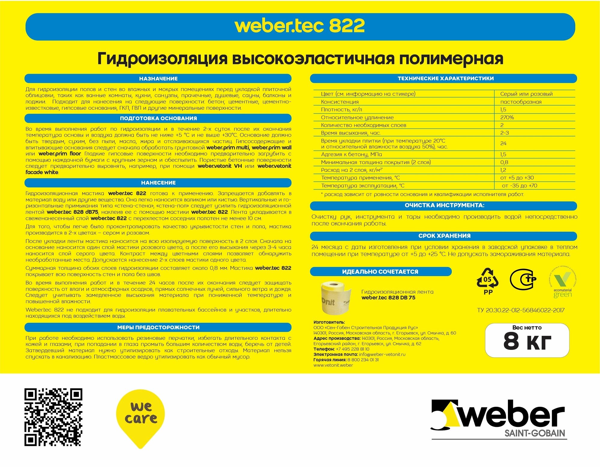 Ниже Вы можете прочитать отзывы на Ветонит Вебер. Тек 822 мастика акриловая гидроизоляционная (8кг) розовая / VETONIT Weber.Tec 822 гидроизоляция высокоэластичная полимерная (8кг) розова, ознакомится с подробными характеристиками, посмотреть интересные обзоры и фотографии на Ветонит Вебер. Тек 822 мастика акриловая гидроизоляционная (8кг) розовая / VETONIT Weber.Tec 822 гидроизоляция высокоэластичная полимерная (8кг) розова.