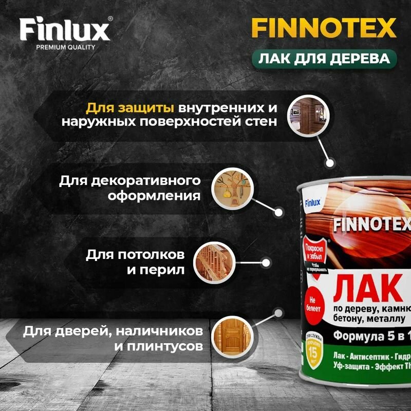 Finlux F-973 "FINNOTEX" акриловый лак для дерева декоративный полуглянцевый, бесцветный