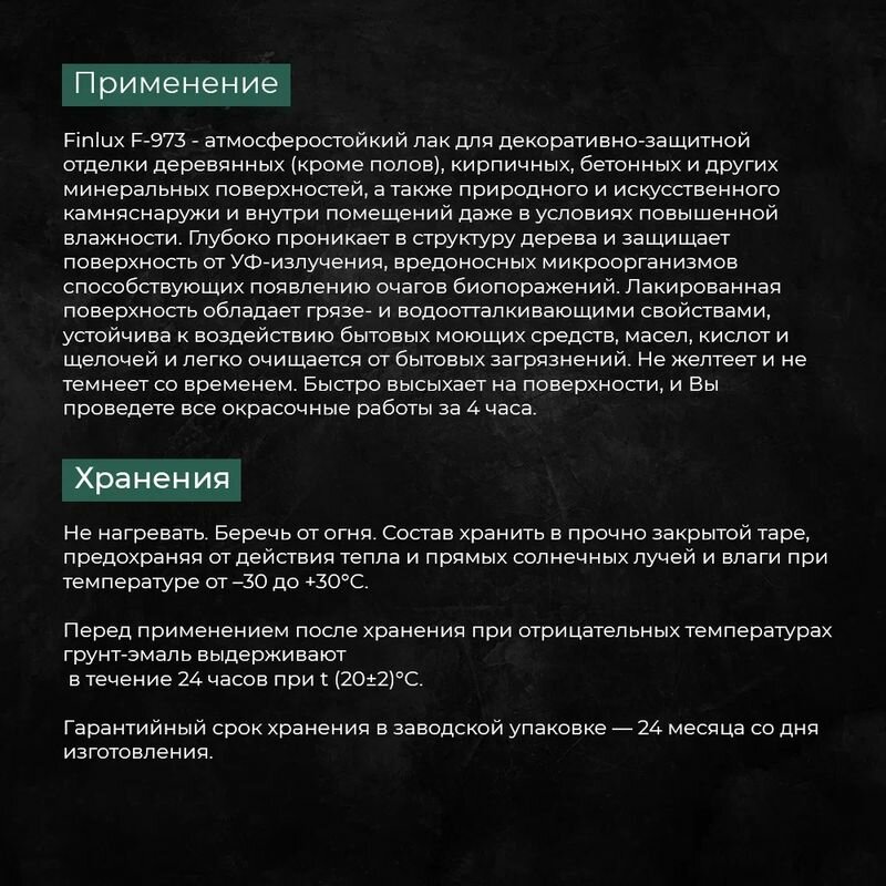 Finlux F-973 "FINNOTEX" акриловый лак для дерева декоративный полуглянцевый, черный