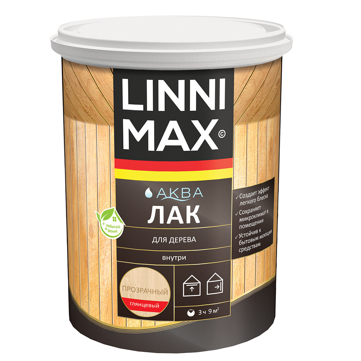 Купить Лак для дерева Linnimax Аква, акриловый, глянцевый, 0,9 л, 1 шт, упаковка банка