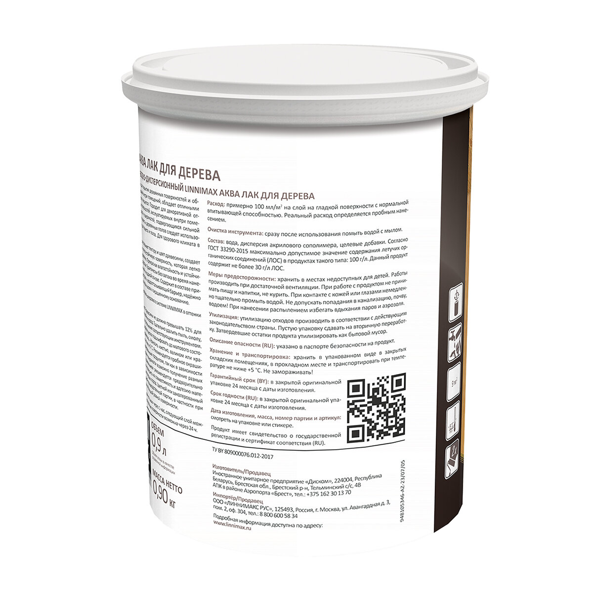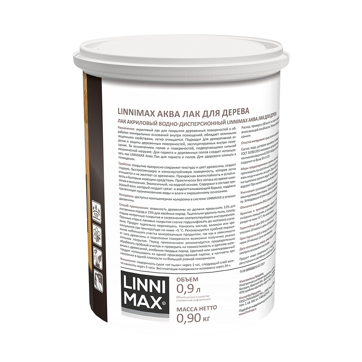 Лак для дерева Linnimax Аква, акриловый, глянцевый, 0,9 л, 1 шт, упаковка банка